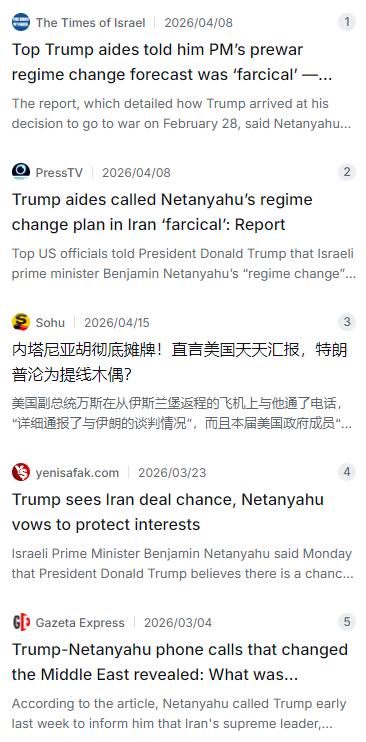 我不演了,我摊牌了:美国确实被我们操控,特朗普政府就是我们的提线木偶,你们能拿我怎么的吧?内塔尼亚胡表示,特朗普政府每天都会就伊朗问题直接向他报告,万斯他报告了和平谈判的每一个细节,“他详细向我报告了情况,正如本届政府成员每天所做的那样。”