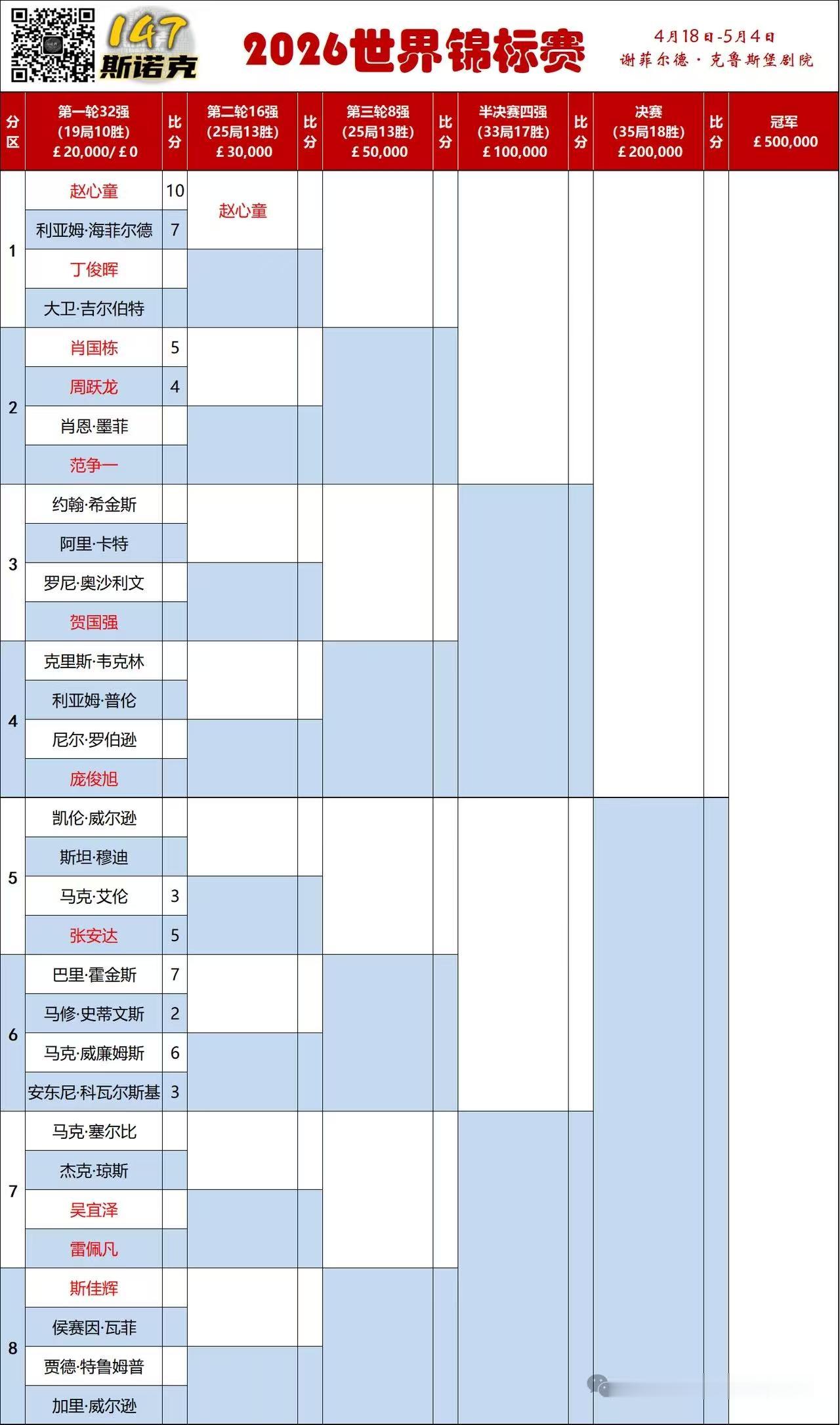 霸王归来,卫冕冠军赵心童首轮10-7击败挑战者金刚狼海菲尔德。