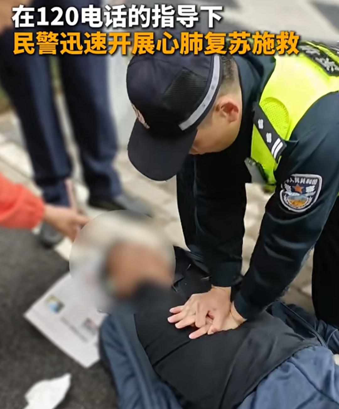 “18、19、20……”民警一边数着按压次数,一边精准控制着力道和节奏,动作专业又果断。周围的路人纷纷驻足,有人帮忙维持秩序,有人焦急地盯着男子的状态,整个街头的空气都仿佛凝固了。