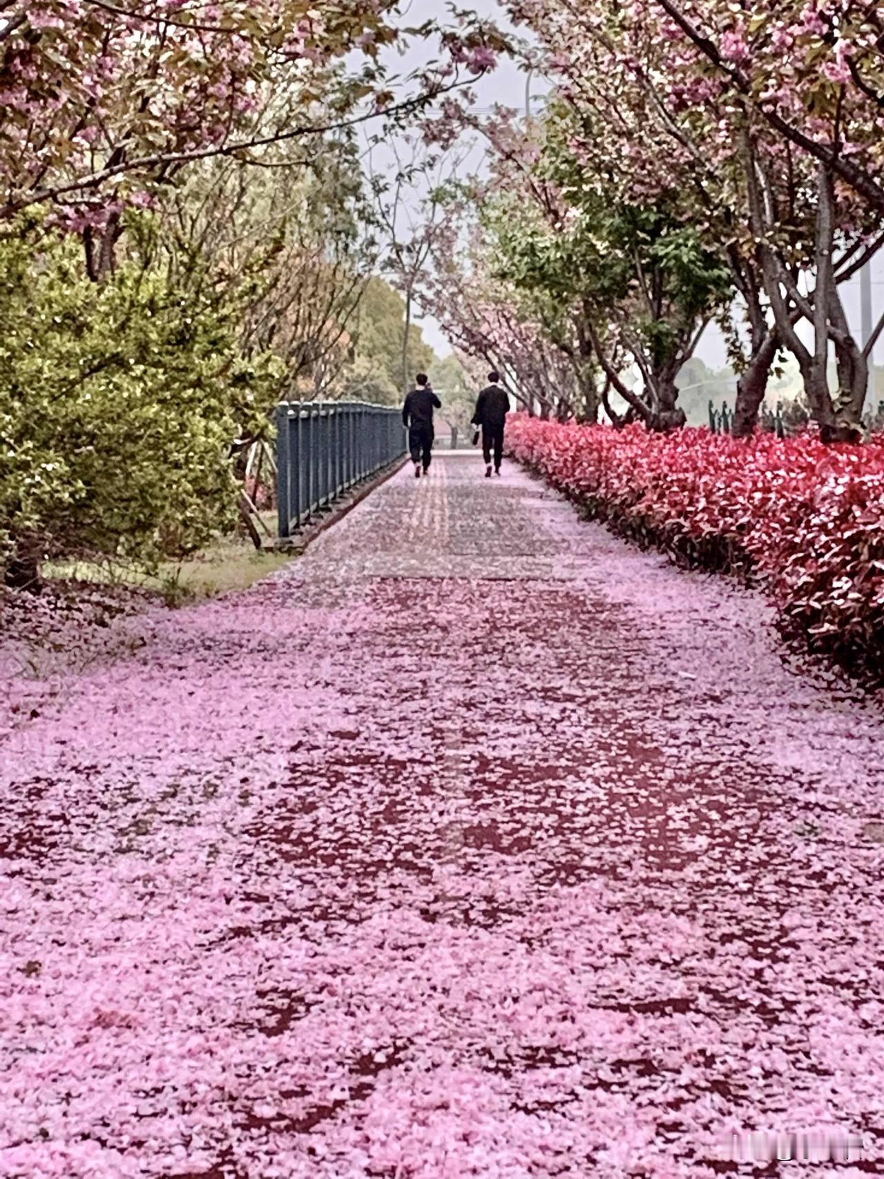 每年的四月,是樱花生命燃烧的时节。从发苞到绽放,用一年积蓄的能量在春天展现其最美的容颜。然而,美丽的时光,总是短暂的。四月下旬,樱花便凋谢落英,微风吹过,花瓣如雨般飘落,一时也勾出一幅幅花雨的美景,花瓣落地又在地上铺出了一条条彩色的樱花路,美得让人只敢看、不想踏!从含苞到开花,从开花到落英,樱花的一生,带给人间的全部都是美好![赞][赞][赞]