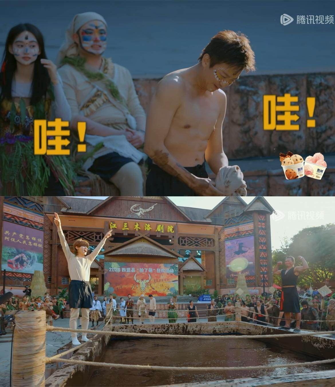 哈哈哈哈哈6我的评分:邓超问鹿晗身材不难看吧邓超在泥潭摔跤拿下首胜,抹了一身