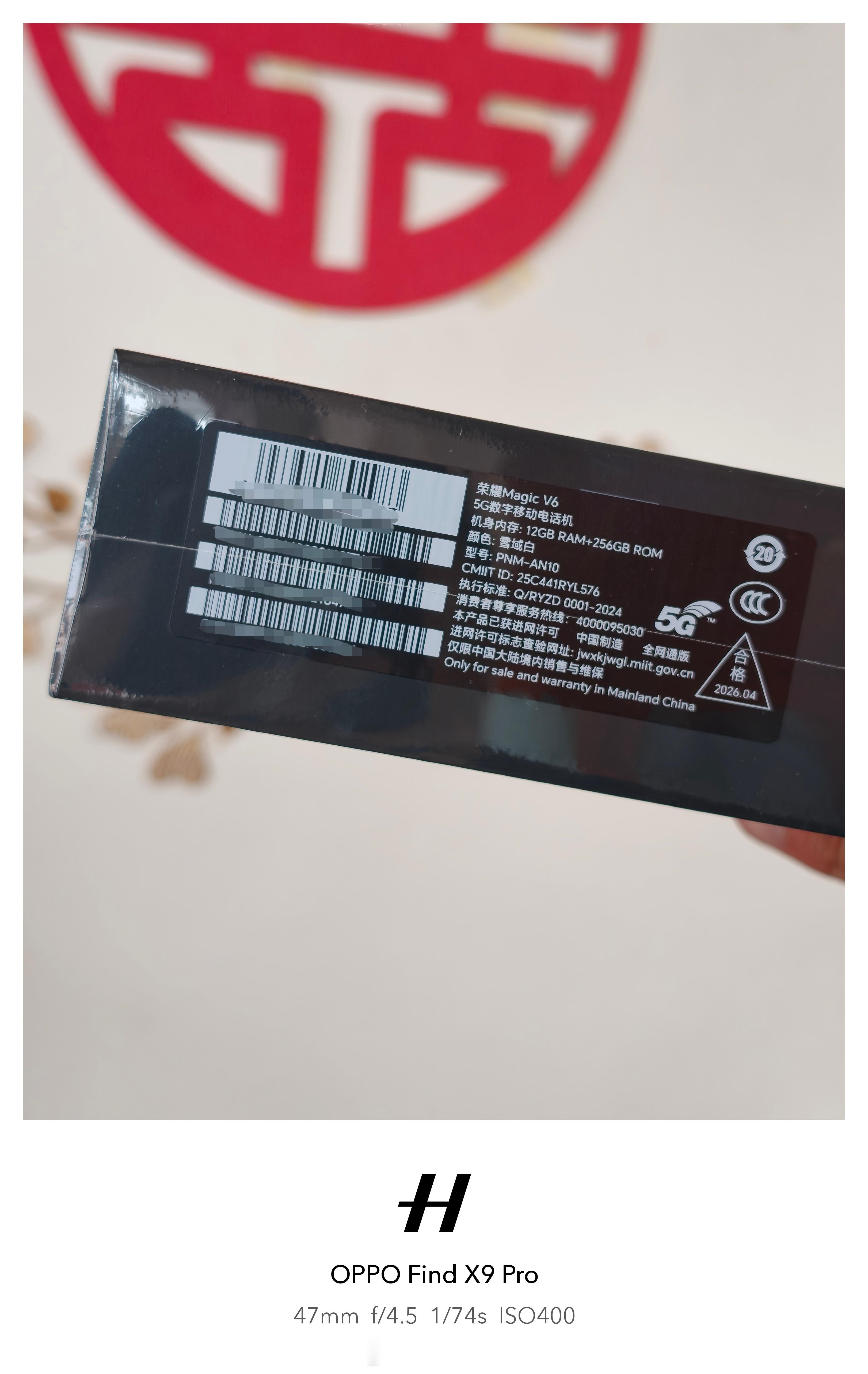 86张,荣耀Magic V6,12+256,白色,全新未拆封。
