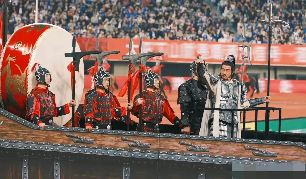 作为项羽故里,为了把新赛季的首场,也是首个主场气氛搞起,宿迁可以说是做足了功课,不但听劝找来了项羽的扮演者何润东,而且还把宿迁的历史元素呈现的淋漓尽致,氛围感拉的那是相当满满,其热闹程度甚至比苏超的首场比赛还火热。