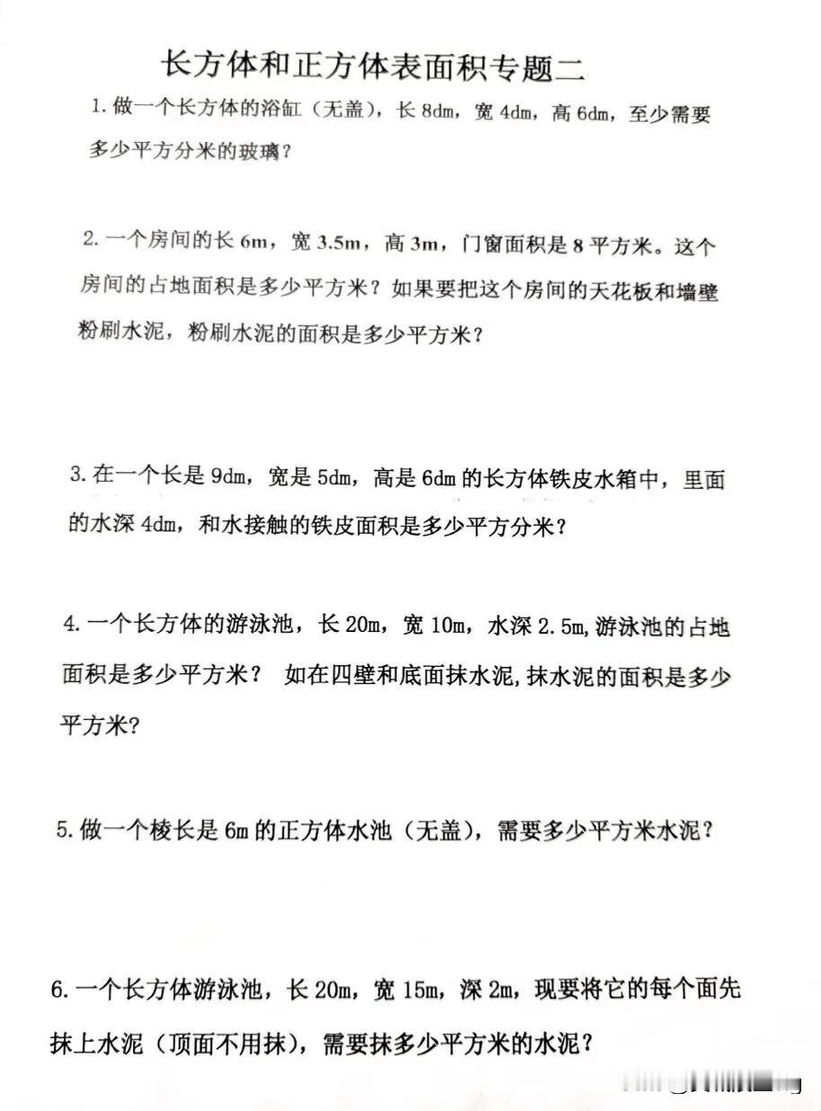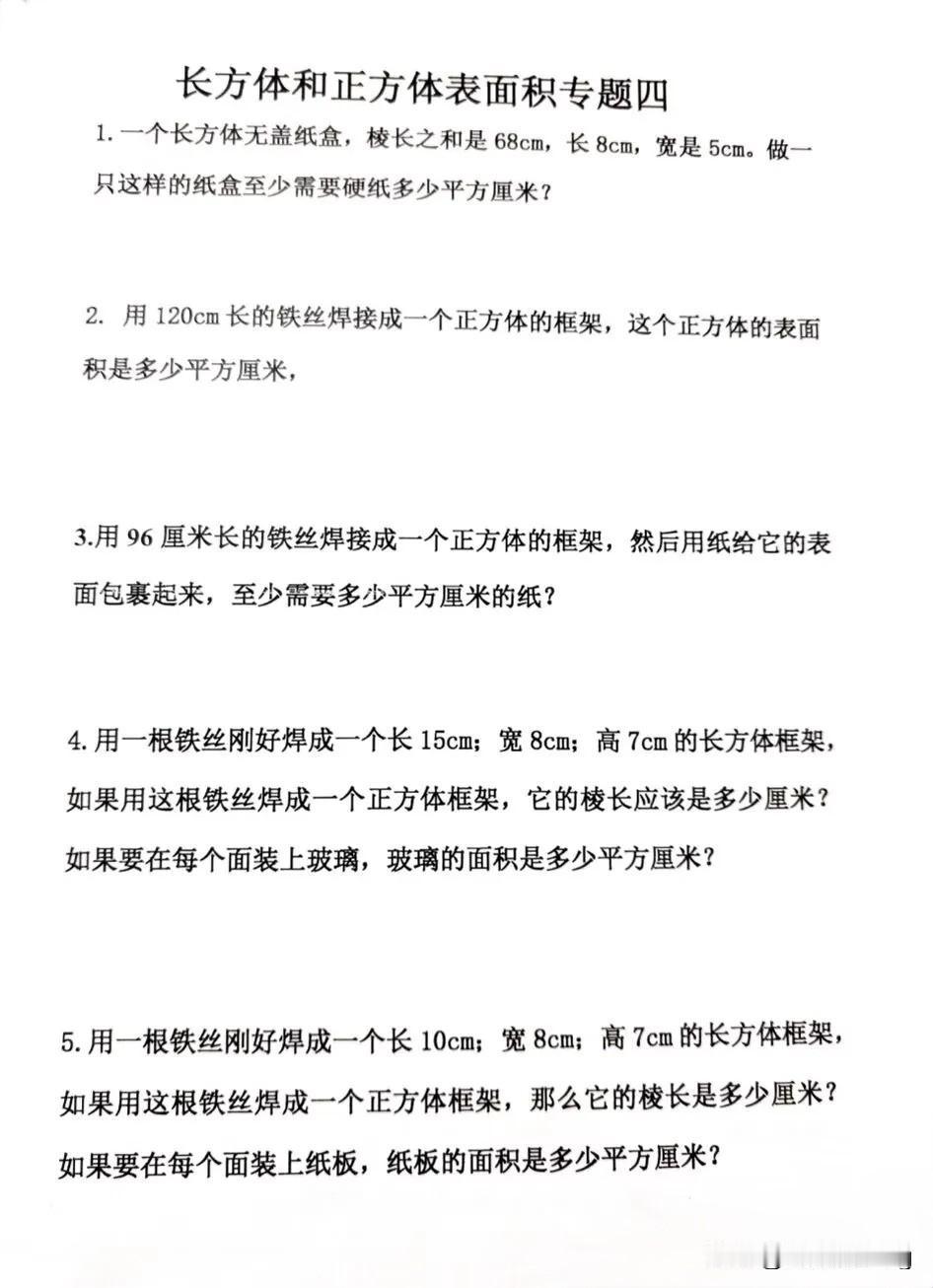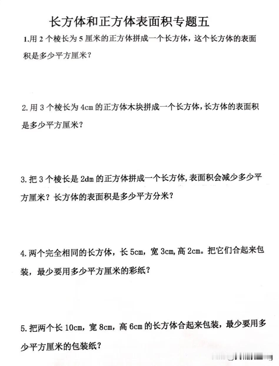 五年级下册数学——长方体和正方体表面积专题练习,快来挑战吧!