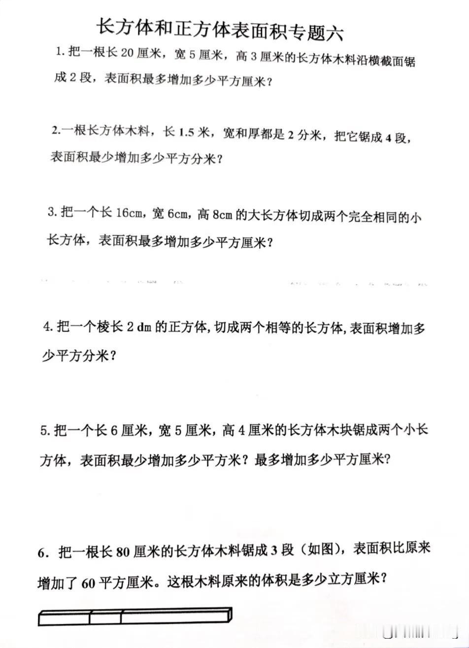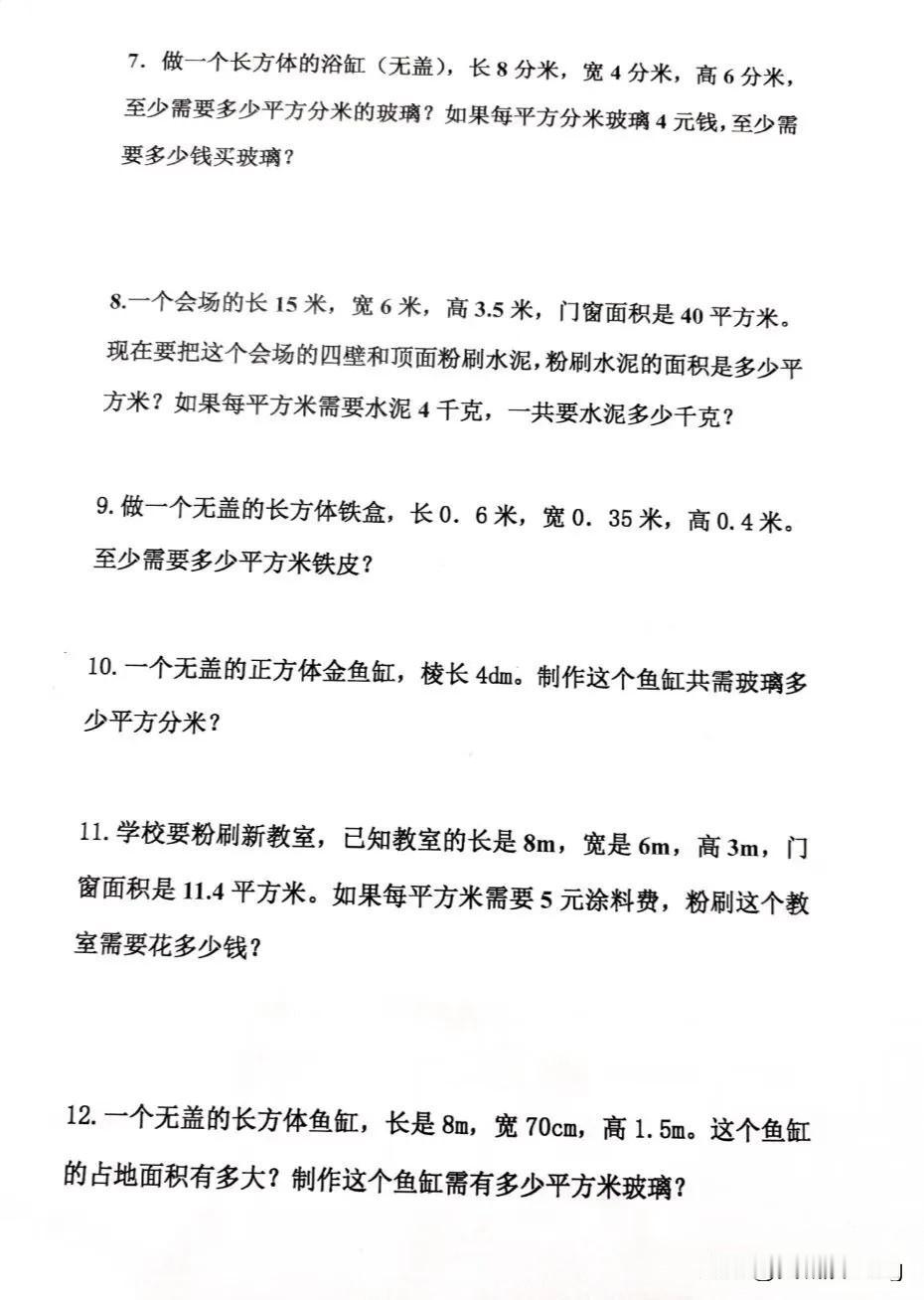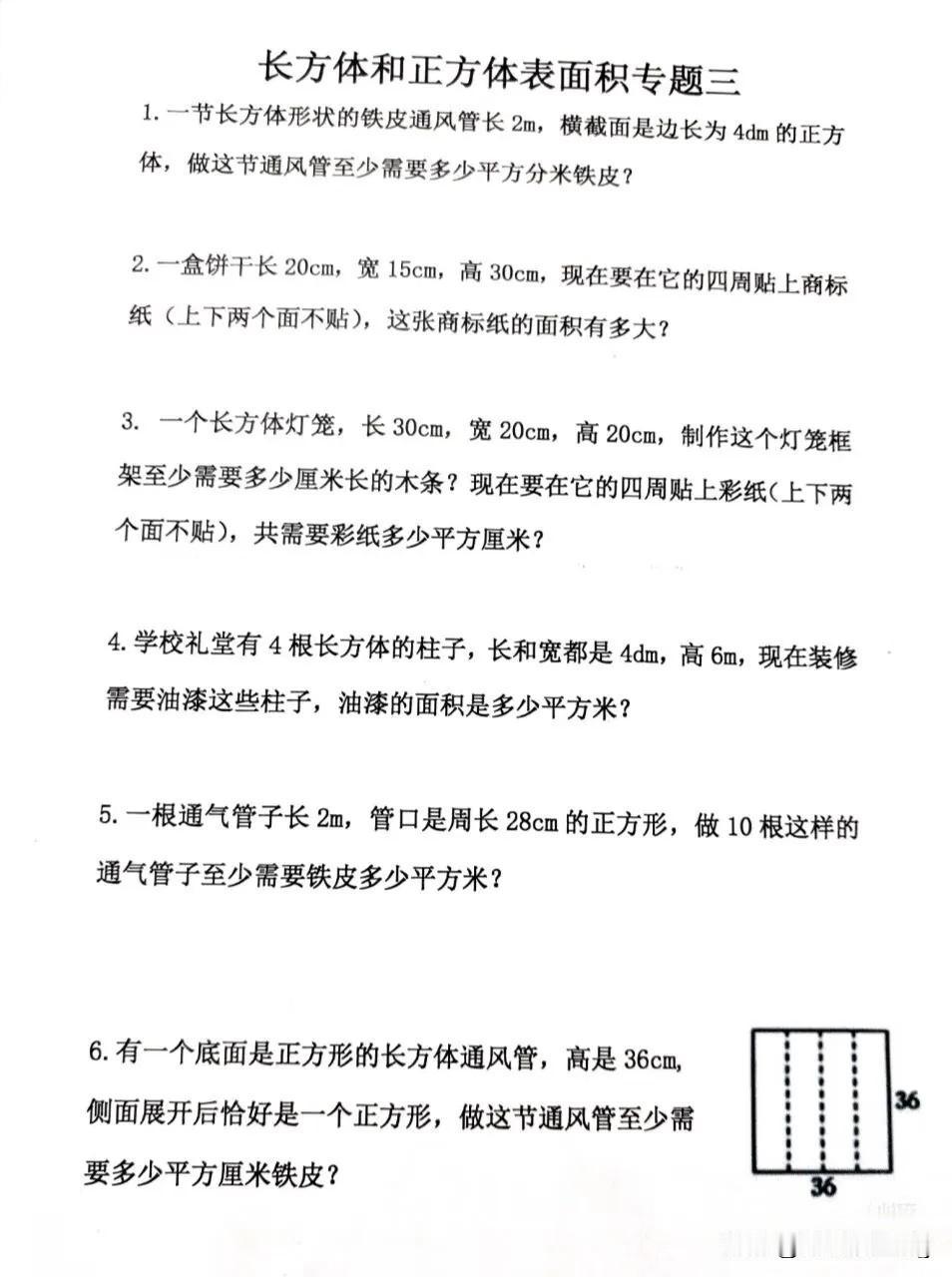 五年级下册数学——长方体和正方体表面积专题练习,快来挑战吧!