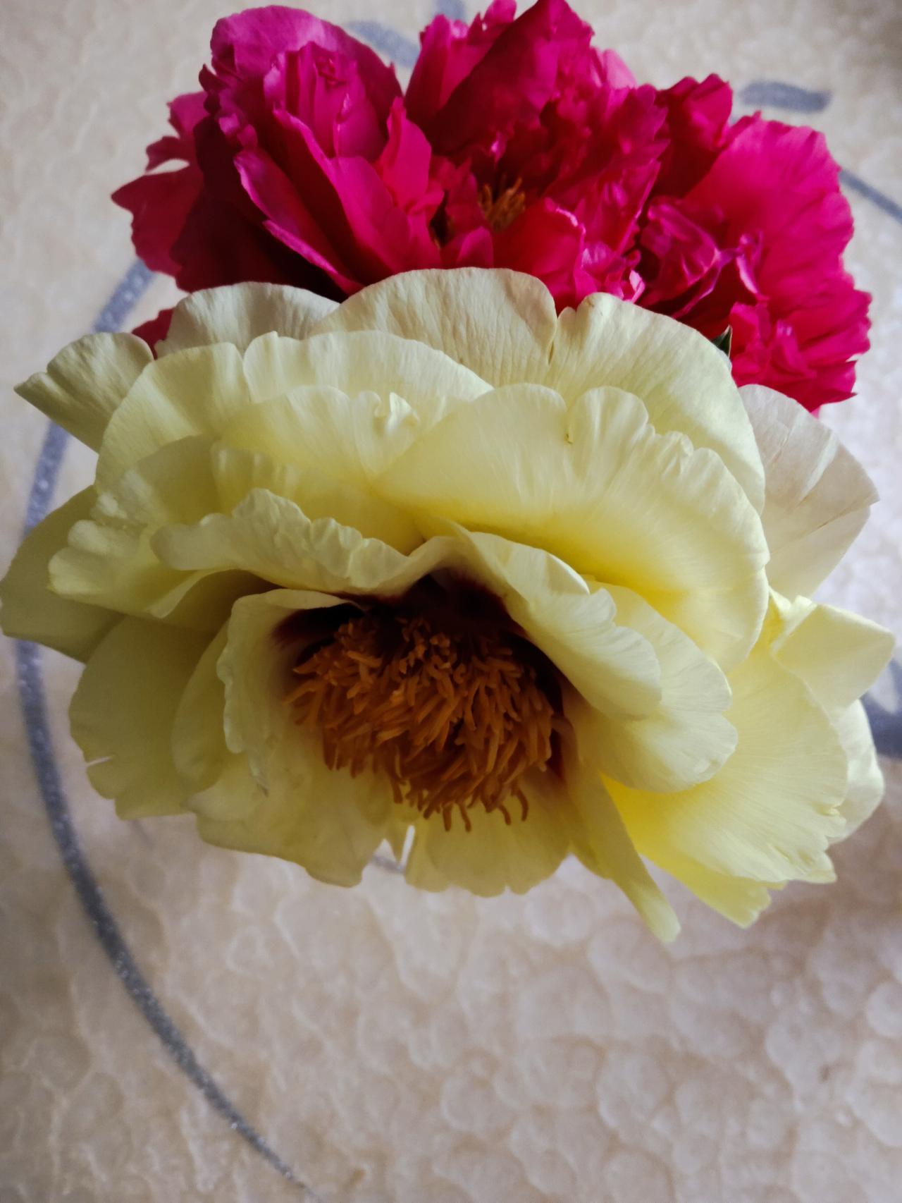 回到家了,我把从菏泽带回来的牡丹花,插在一个大点的瓶子里,真是满屋飘香。