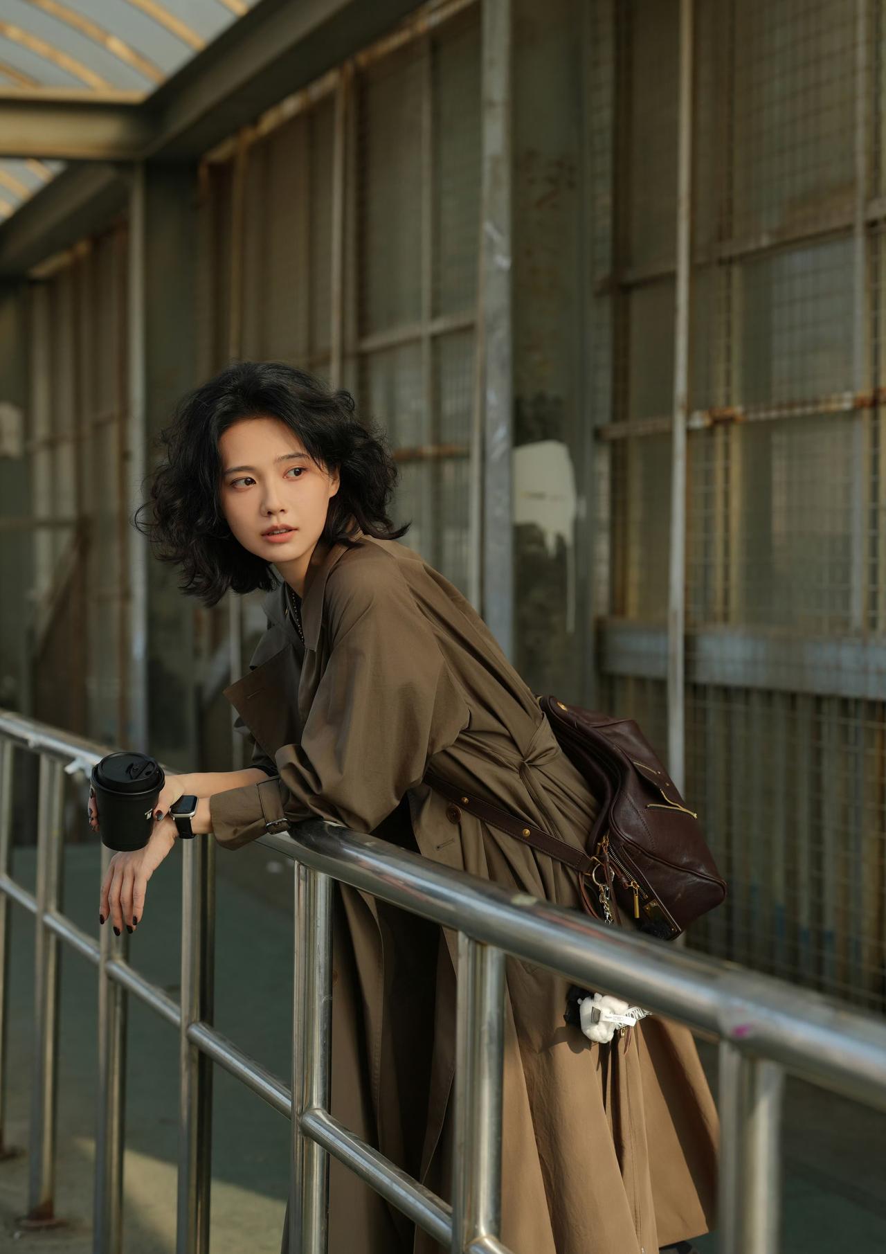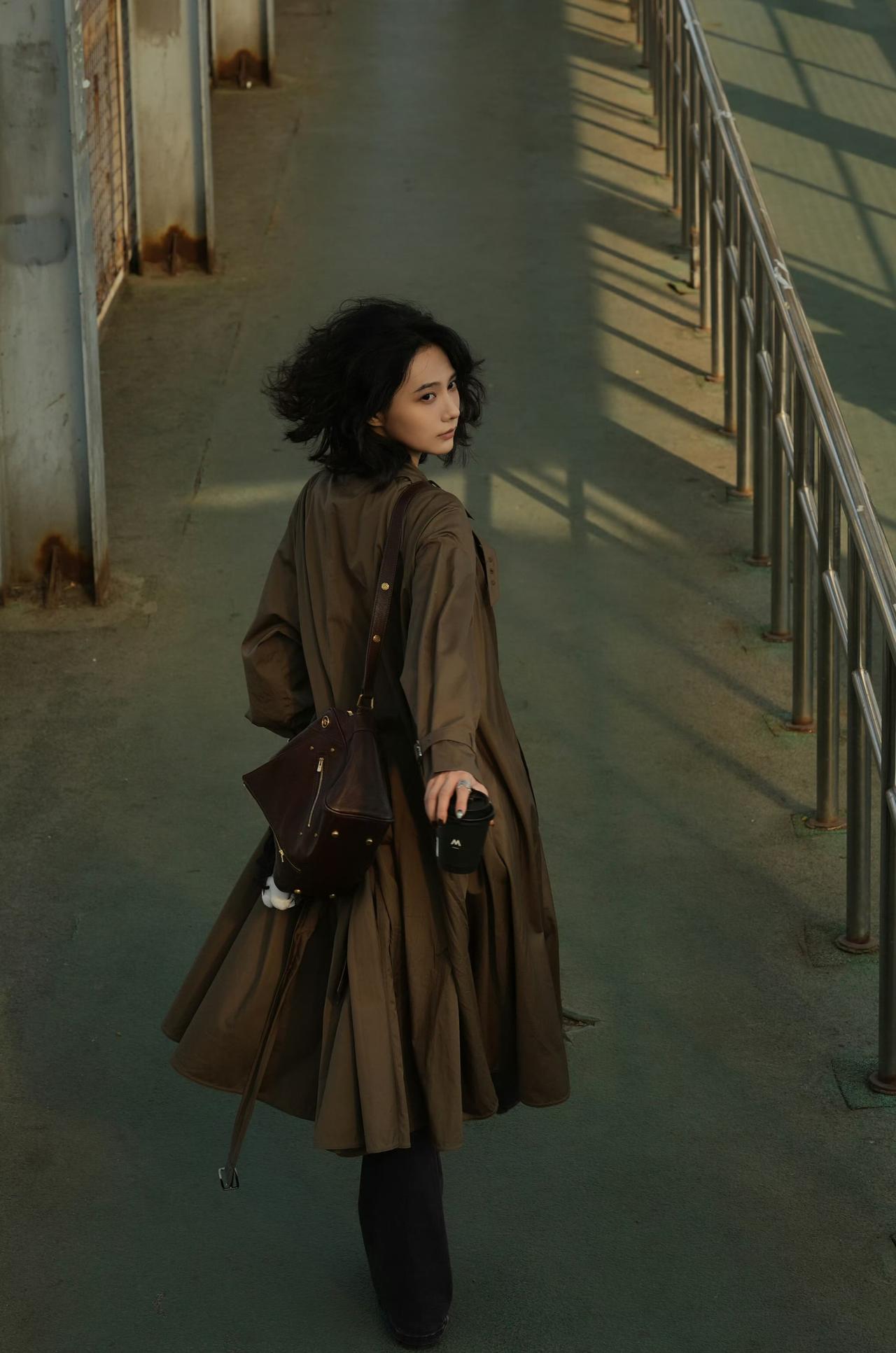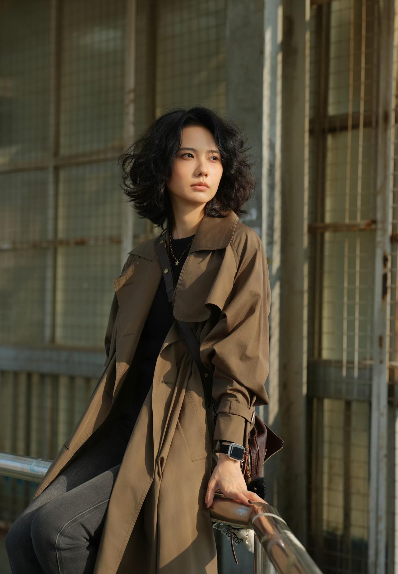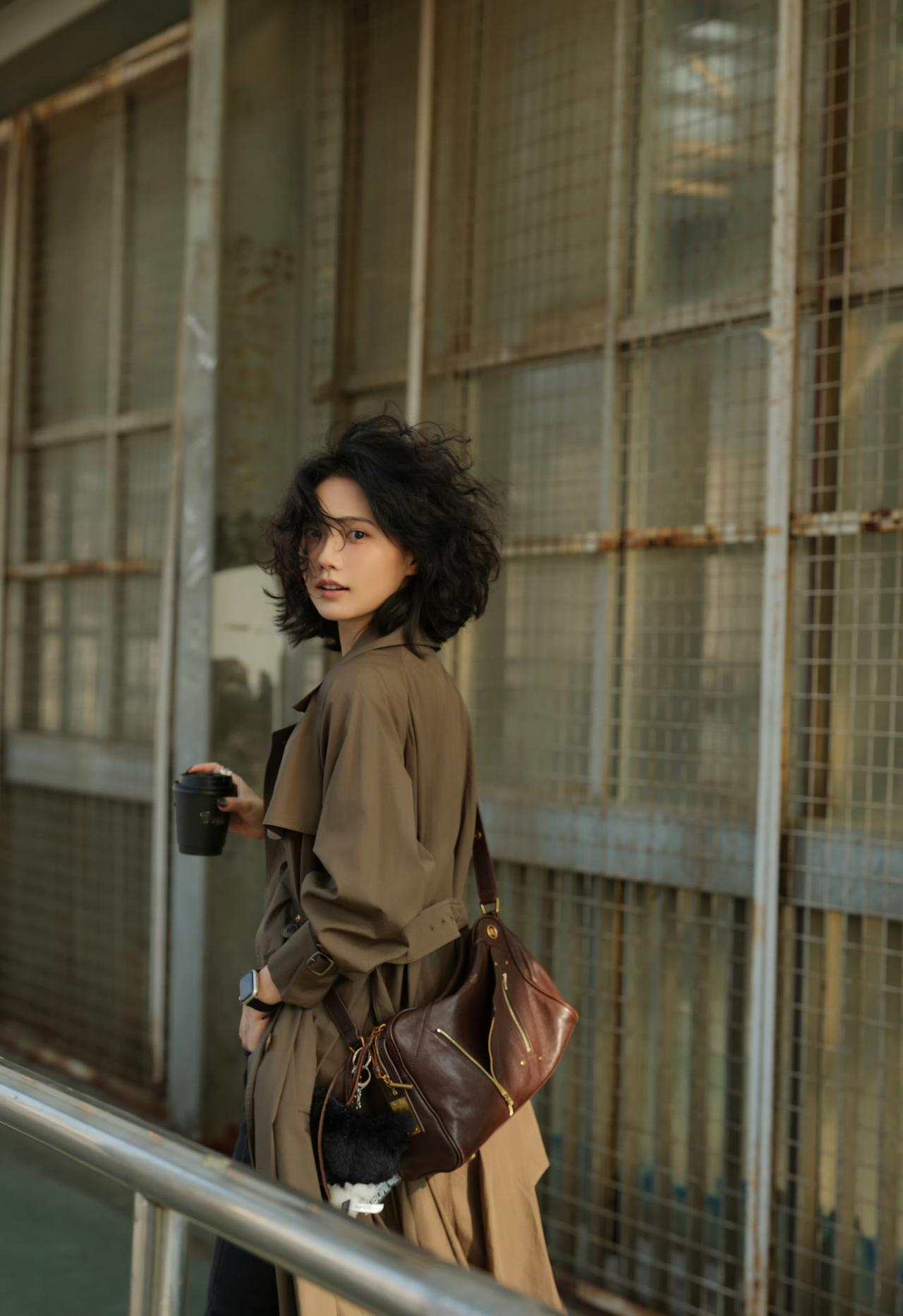 谁说风衣只能穿得刻板?微卷短发+大地色系风衣,再配上一只复古皮包,松弛感和高级感直接焊在身上。