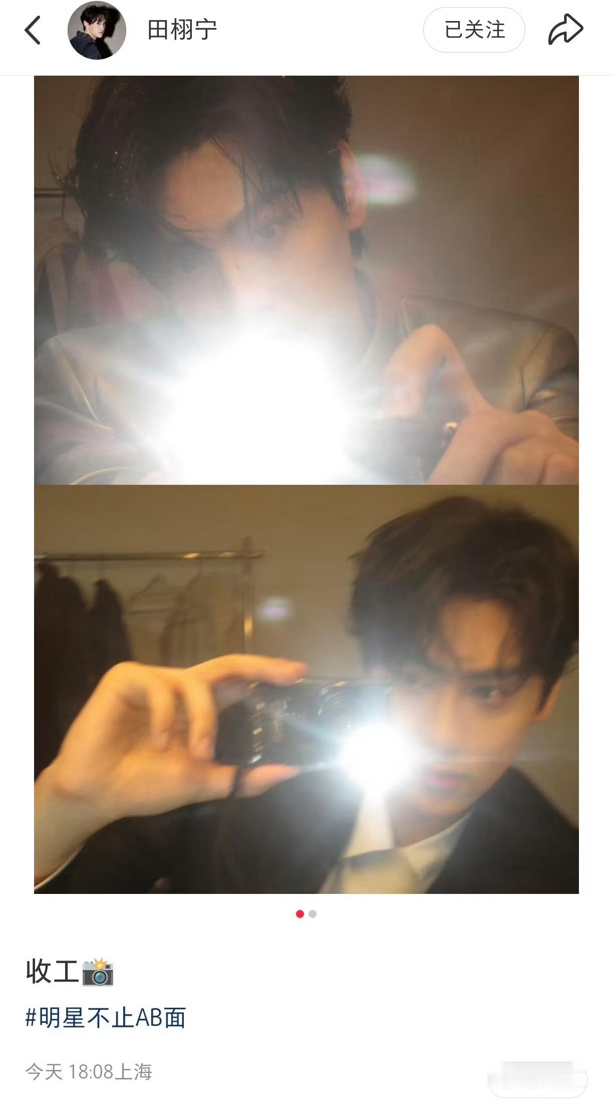 田栩宁晒收工自拍田栩宁晒收工自拍,这个闪光灯自拍照好帅啊!!!感觉人在发光!!!