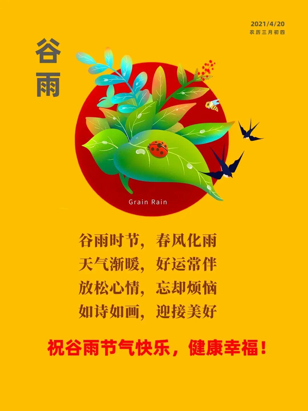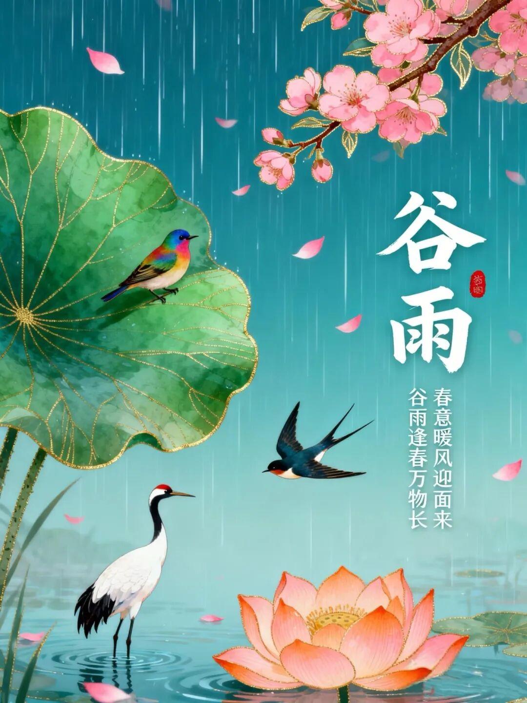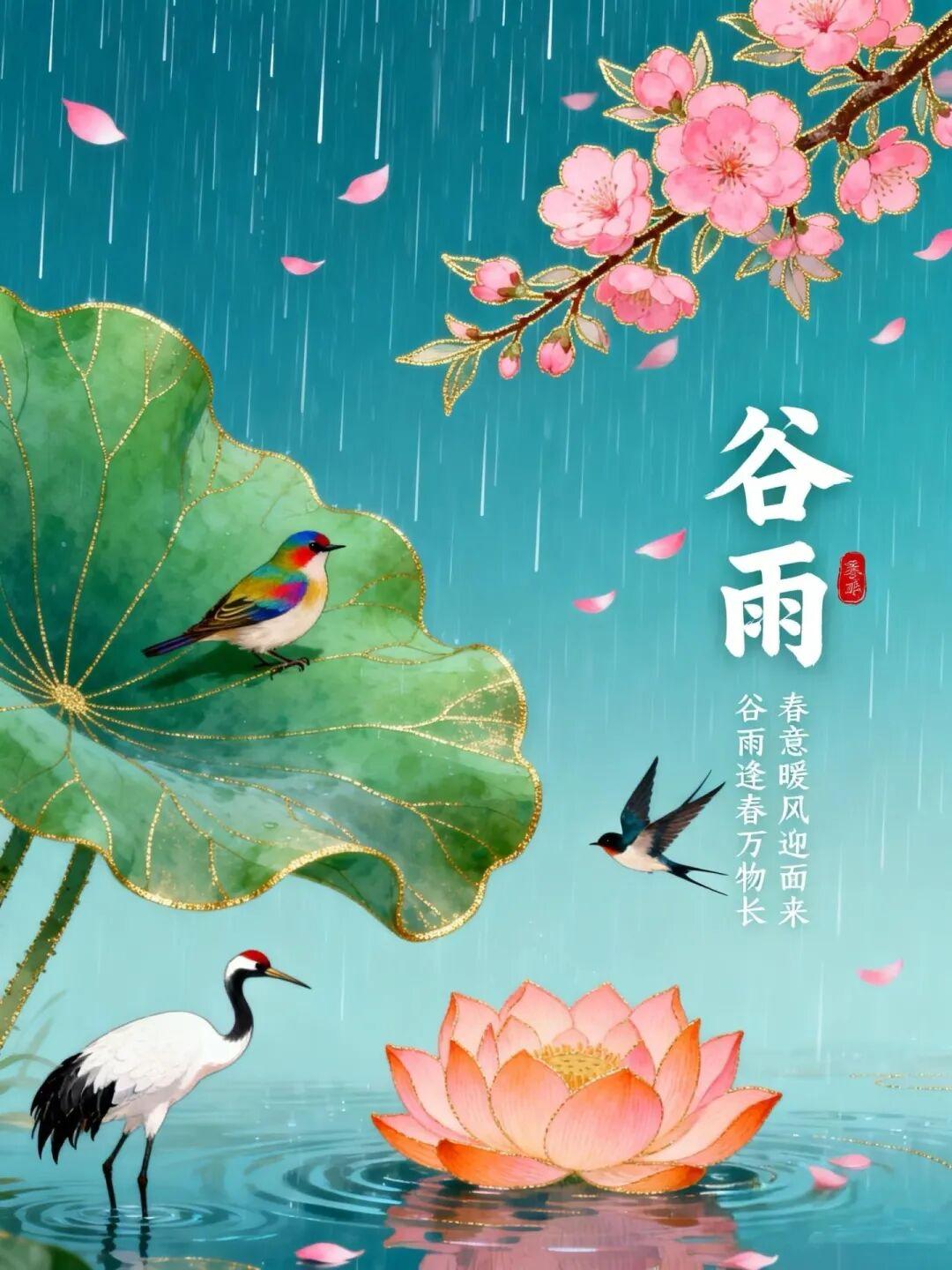 🌾今日谷雨🍃谷雨好时节,甘雨正当时;丰收有盼头,欢喜满心头。愿你爱情、财源、健康、快乐、幸福齐丰收。谷雨节气安康♥