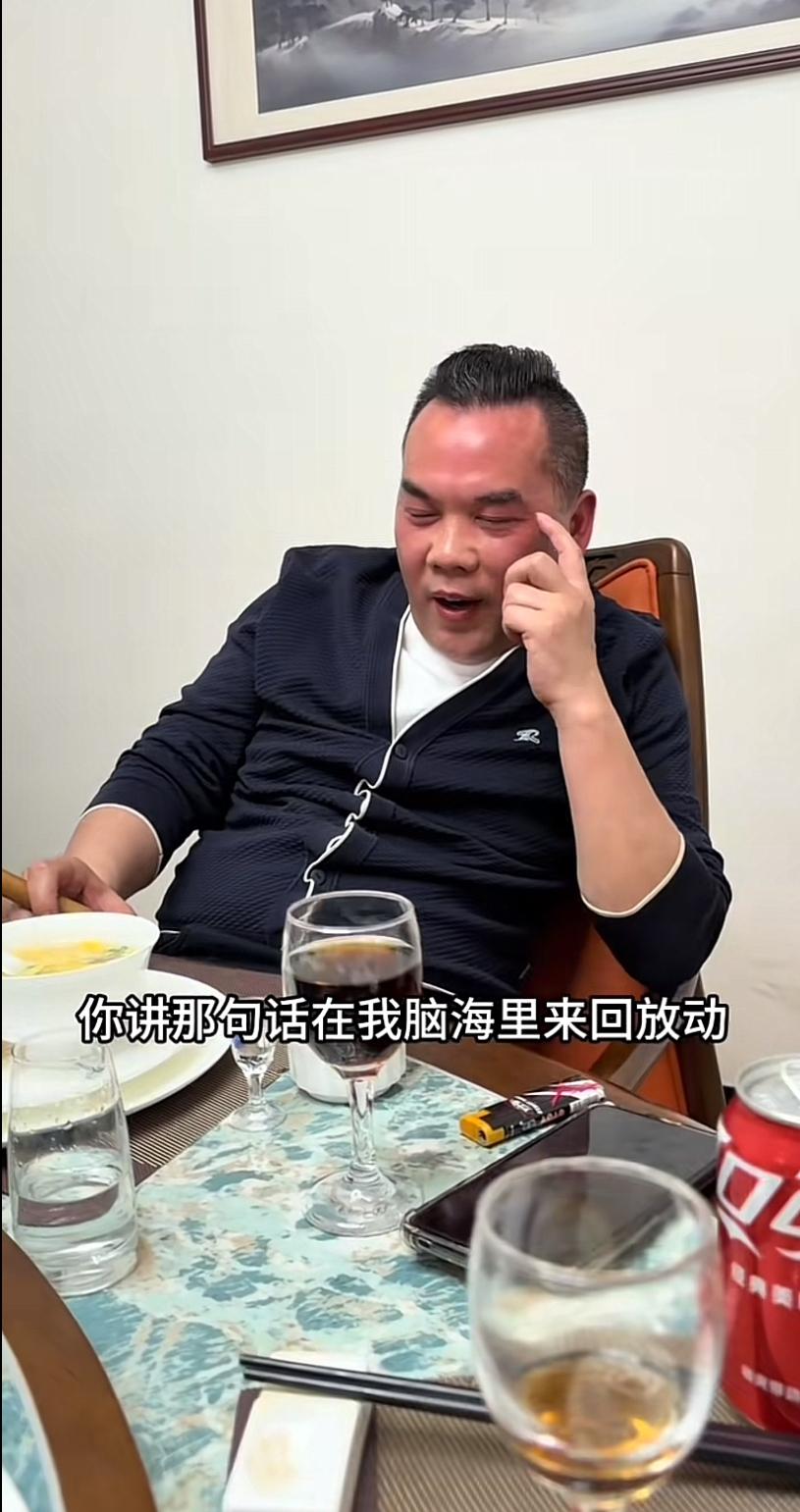 画面里的他,阿牛哥靠在椅背上,桌上摆着酒杯和可乐,眼神里全是酒后的认真和执拗,跟当年那个对着张大炮放狠话、硬刚到底的样子判若两人。