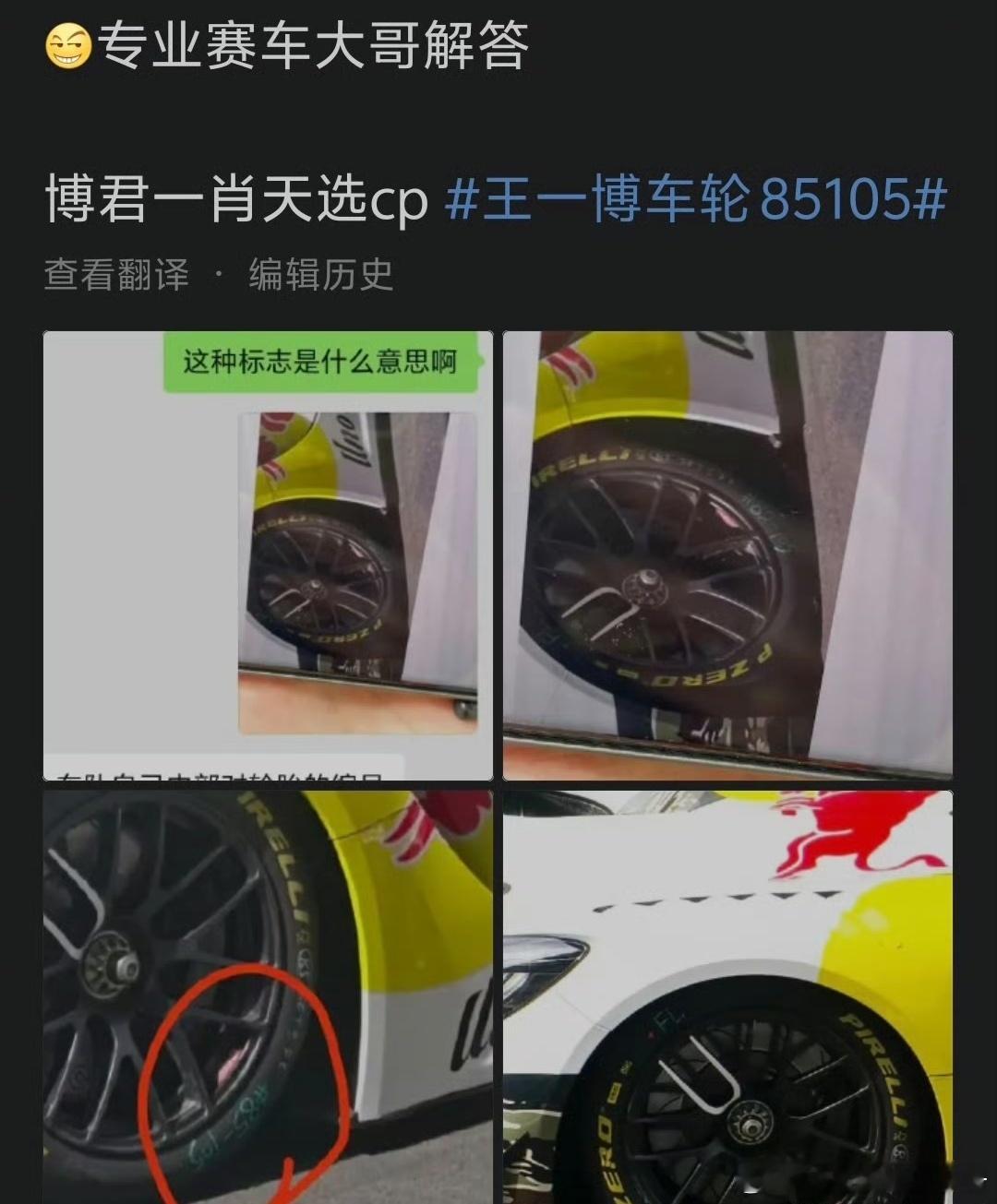 王一博赛车车轮编号85105,对应王一博生日8月5日 肖战生日10月5日,现在博君一肖cpf已经开嗑🍬,你怎么看?王一博车轮 85105