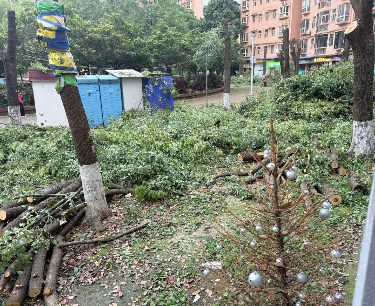 全国都在伐木式修剪,就像统一行动。看清楚不是矮一点,是全剪完,只剩主杆。大概原因是两点,一是人家低楼层拥有合法采光权,二是安全隐患,有台风地区之前砸死过人。参天蔽日的大树给整个小区带来的效果就是阴森感。中国的小区都不注重地面绿化,结果就是大树遮挡阳光,底下脏乱差,这样的环境还不如把树修剪的低矮一点,让环境更加通透一点。