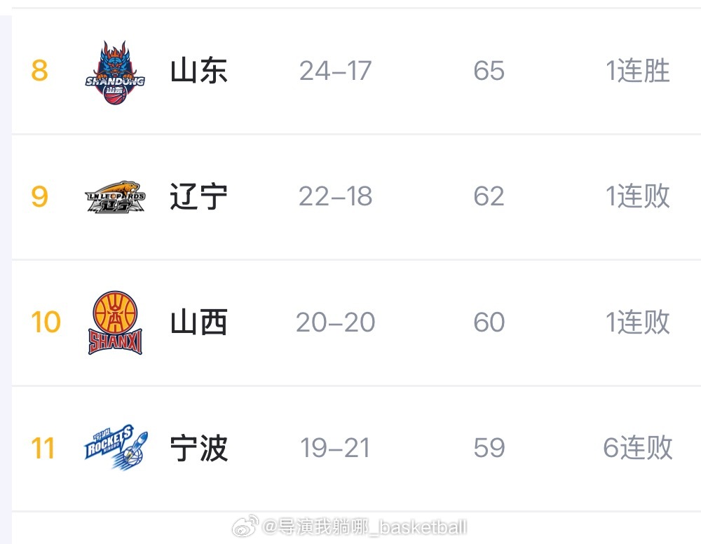 其他的结果辽宁都是排在常规赛第九