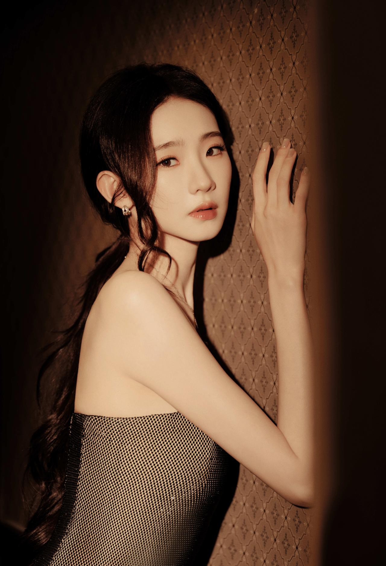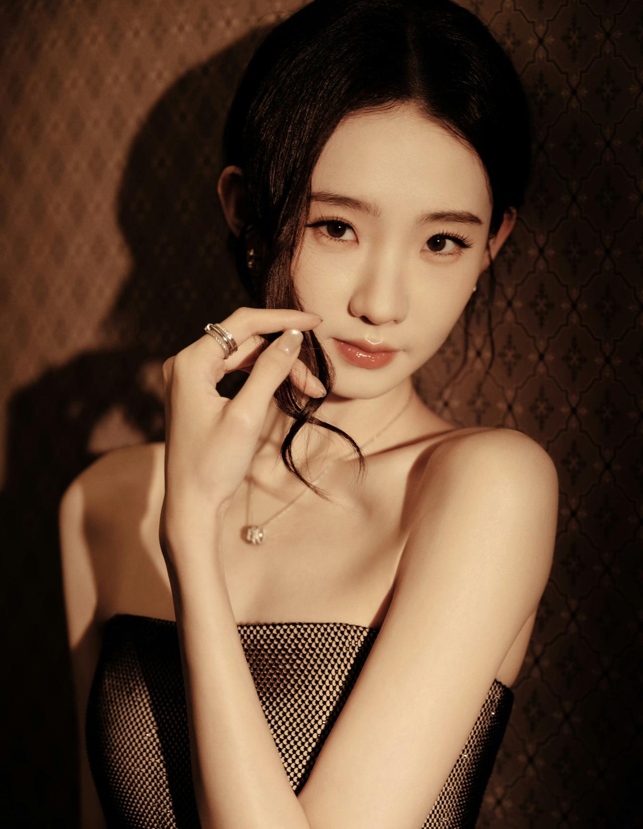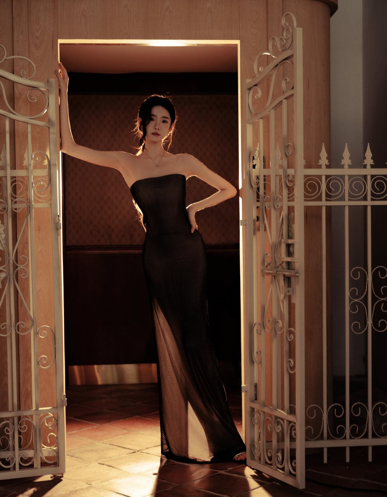 张艺凡这套造型真的把“清冷贵气”焊在身上了!一袭黑色网纱抹胸长裙,细闪在光影里流淌,像把整个银河都穿在了身上。 利落的抹胸剪裁完美勾勒肩颈线条,搭配简约的钻饰项链,没有多余的堆砌,却把高级感拉满,是暗夜中自带故事感的黑天鹅没错了。