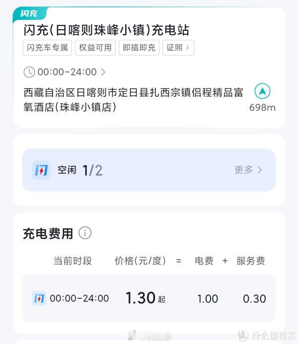 有意思的是,虽然这个闪充站很特别,但它的收费居然还不算贵,全天收费1.3块一度电,比市里的还便宜。
