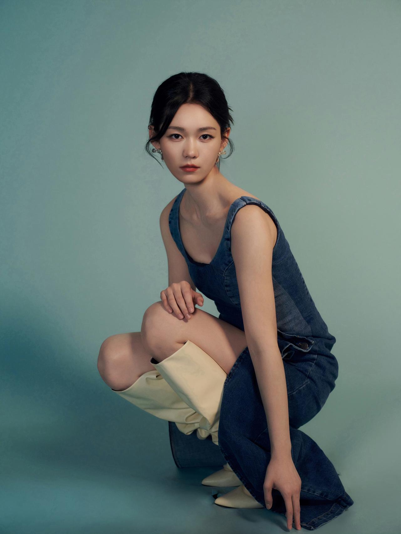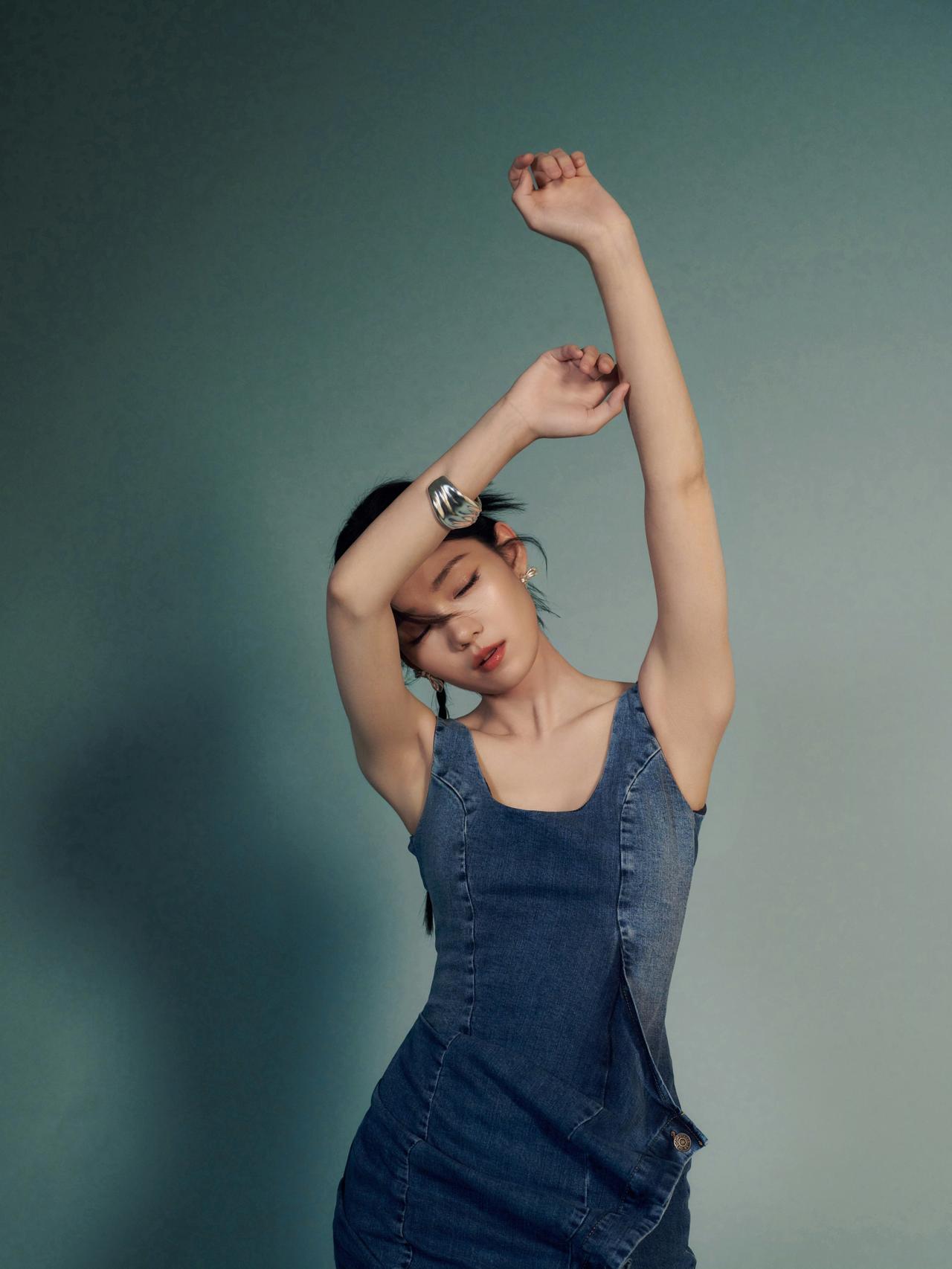 低饱和蓝调背景,衬得牛仔质感愈发高级。利落的剪裁勾勒出舒展的线条,松弛又有力量感