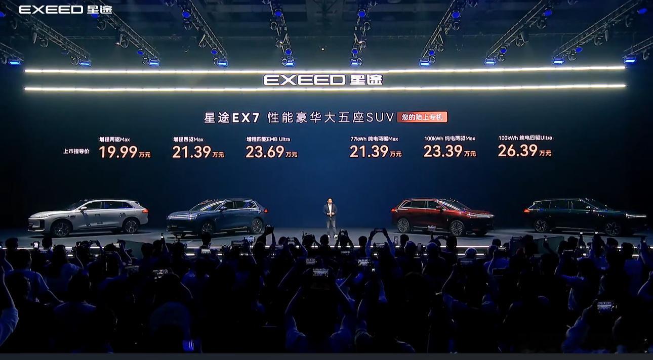 冠军🥇严选哈!价格也来了!19.99万起,你喜欢吗?性能豪华大五座SUV星途EX7正式上市全球首发航空级EMB线控制动星途EX7你的陆上专机正式启航