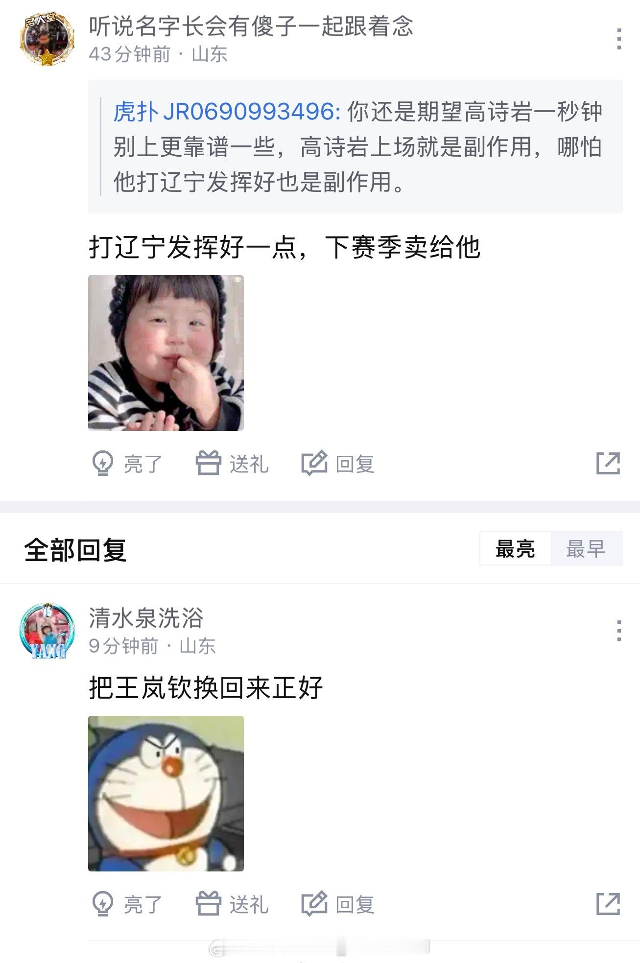 山东球迷感觉自己季后赛挑到辽宁队很满意,高诗岩也嫌弃的不行了