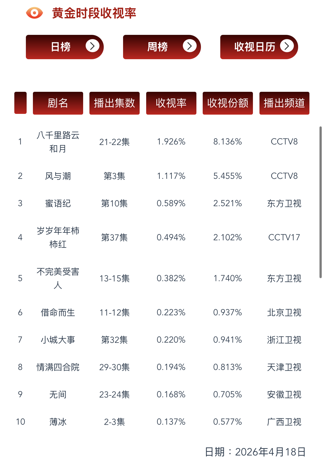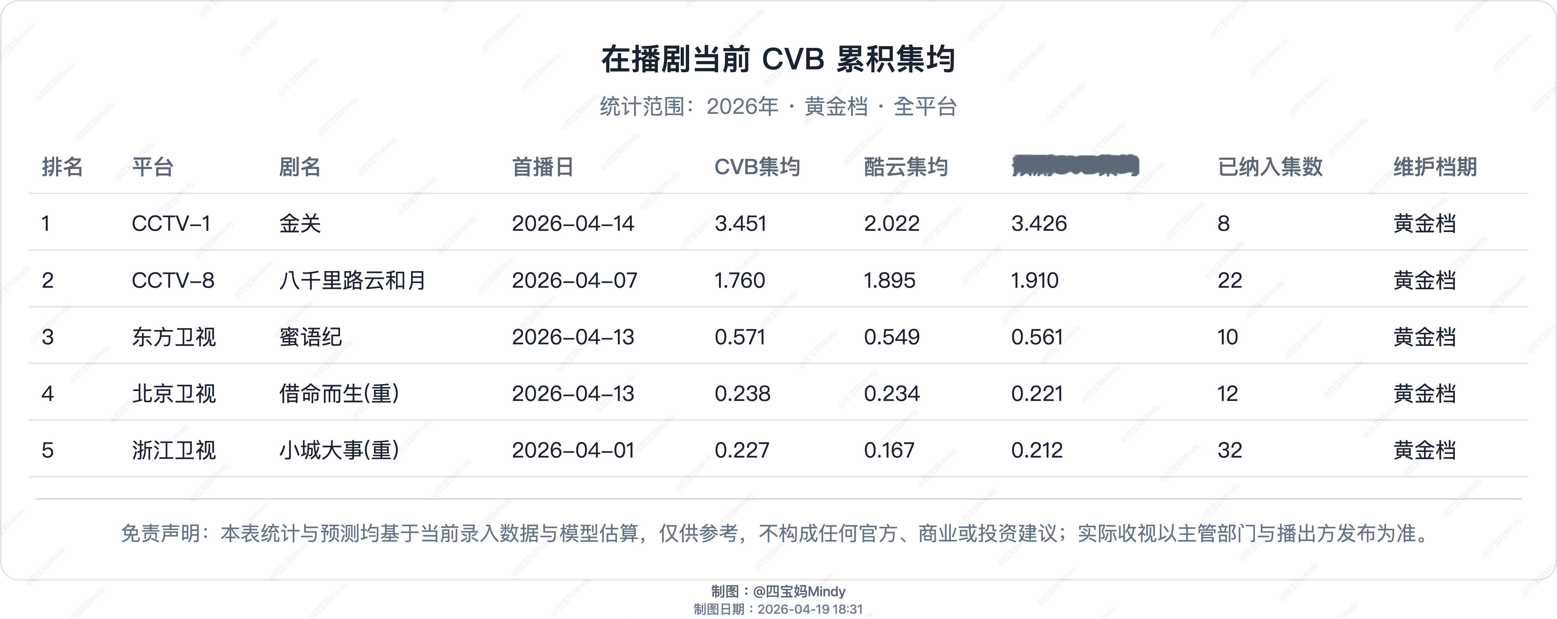 4.18 CVB验证果然前天修正了预测模型昨天就命中了在播剧:金关、八千里路云和