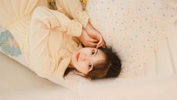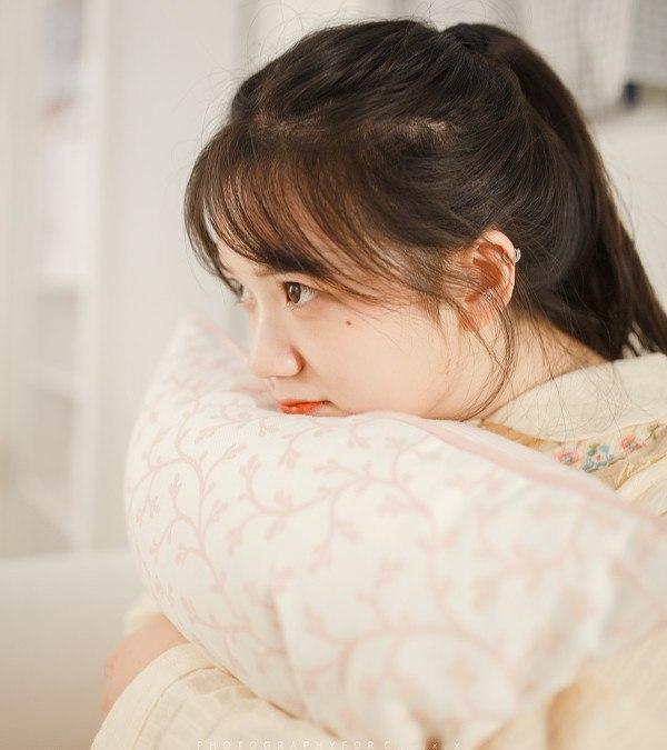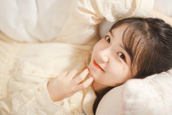 阳光洒进来的午后,少女微笑倚靠在墙边。可爱 阳光少女照 秋日少女照 阳光少女照