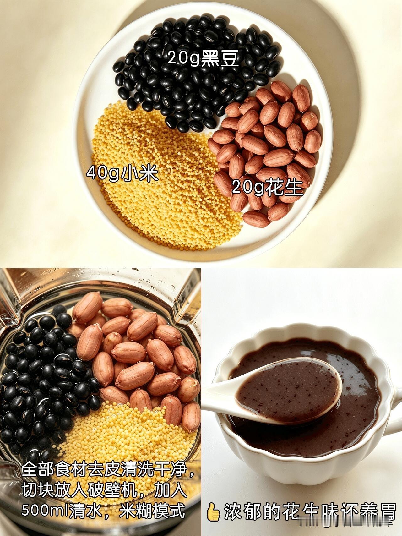 所有食材洗干净放进破壁机,加水用米糊模式打成细腻的糊糊,不用加糖也自带清甜,早上来一碗,暖胃又暖心,一整天都元气满满。