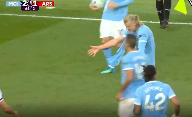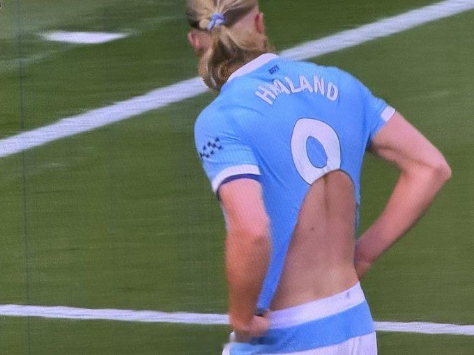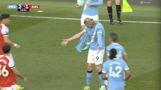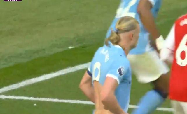 曼城vs阿森纳哈兰德这衣服质量太差了,都成缕了