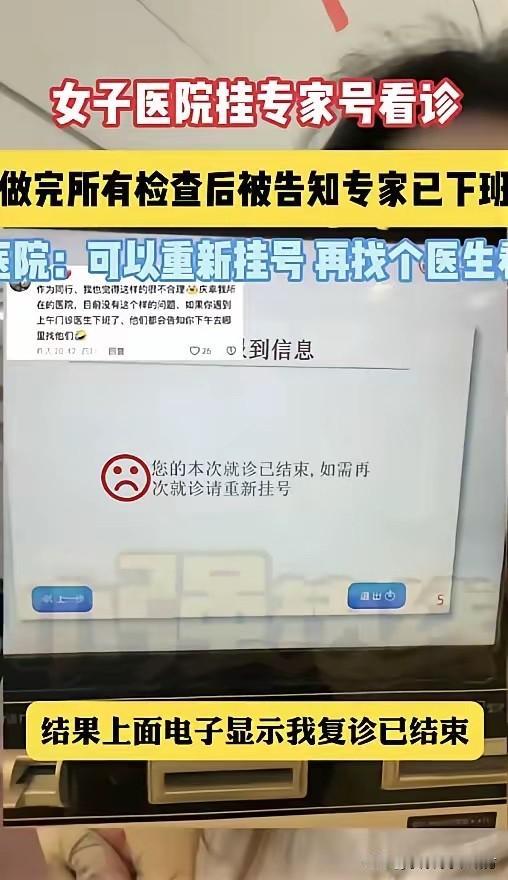 有网友说:“太感同身受了,之前我也挂过专家号,专家开完检查我做完回来,人也走了,最后只能第二天重新挂号,钱花了两遍罪也受了两遍。”