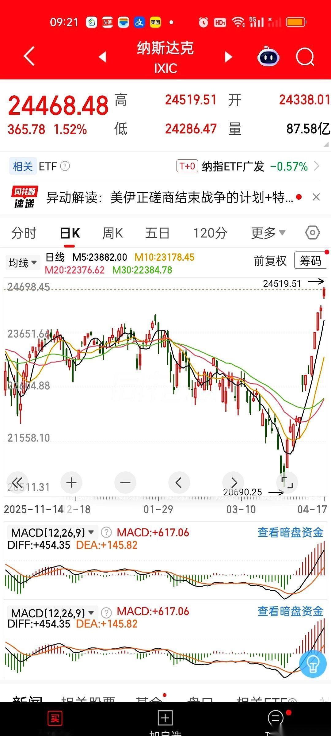 纳斯达克指数刚刚跑完了一个连涨13天的百米冲刺,直接把维持了55年的历史最高纪录给超了。紧跟着,标普500也刷新了69年来的最高点。最离谱的是道琼斯,今天收盘又拉升了800多点,距离那个跨越130年的历史最高点,只剩临门一脚。