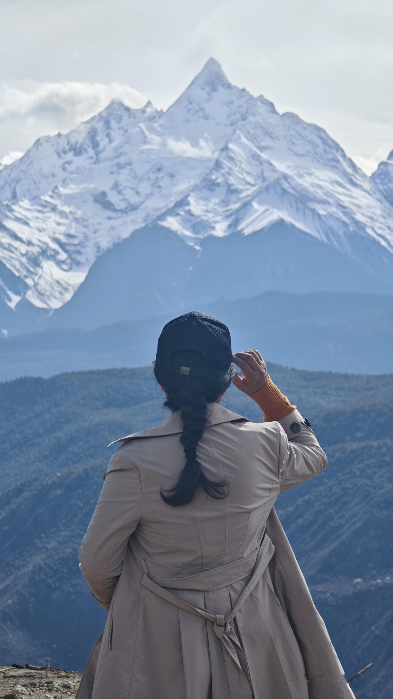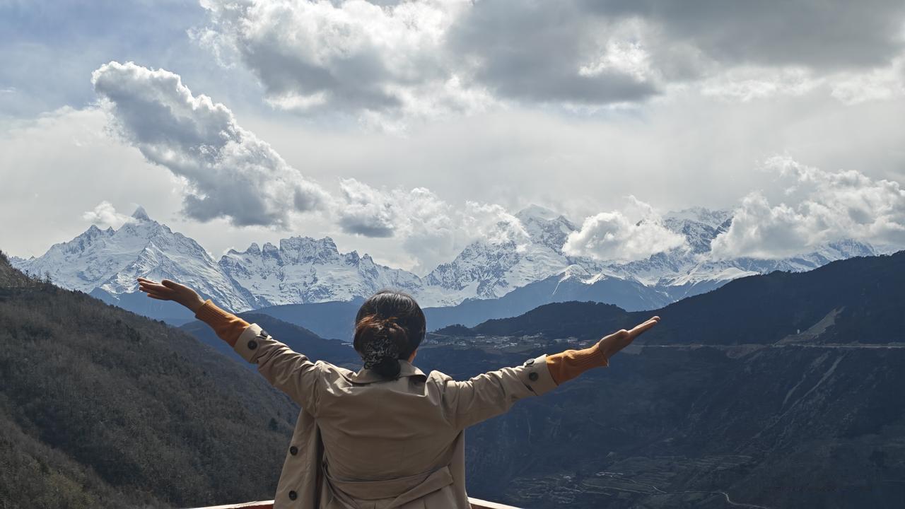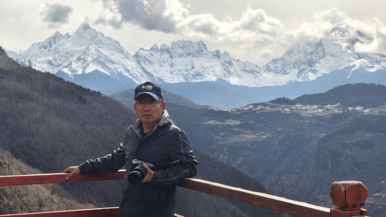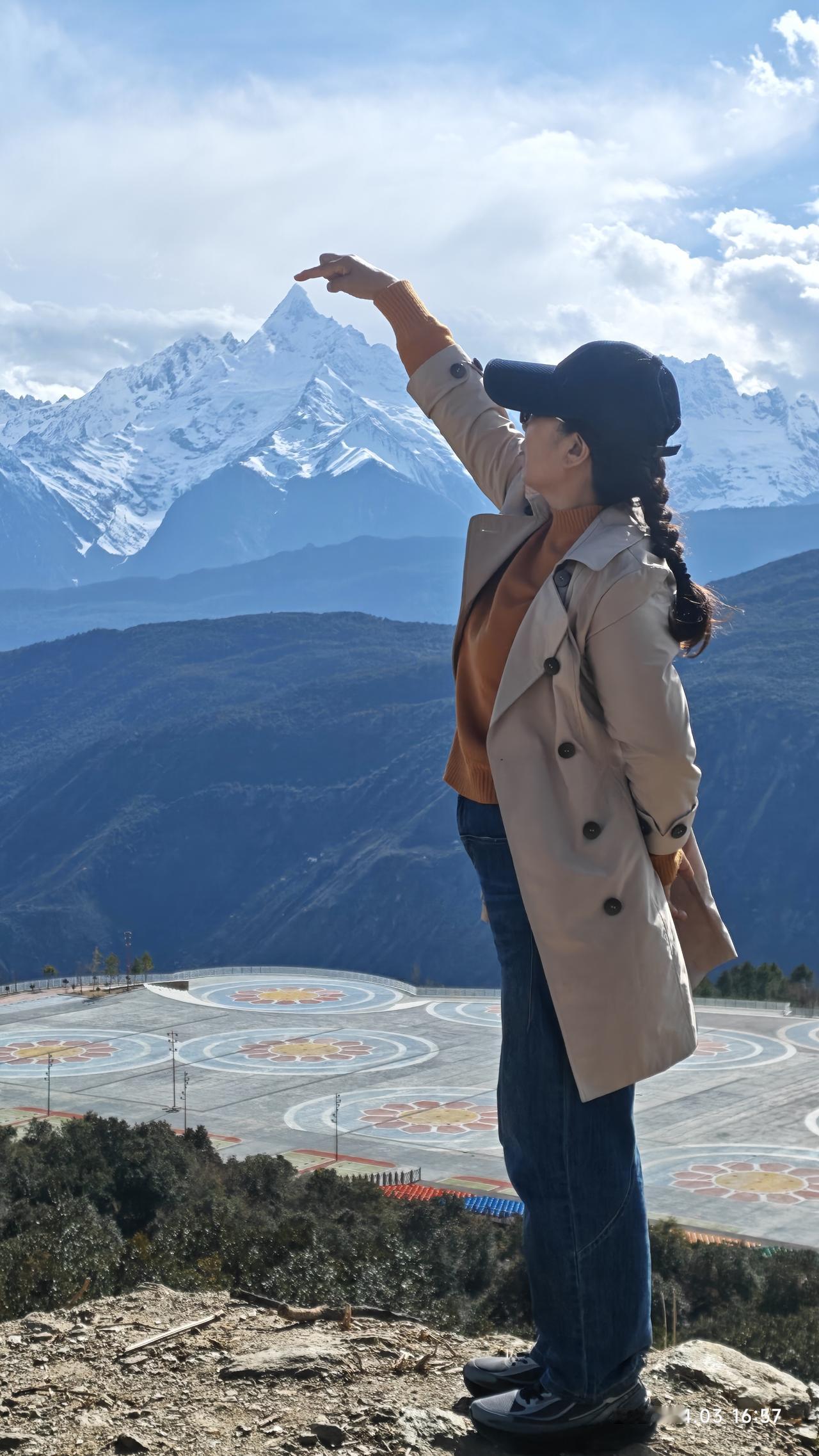 上去之后,很快就看到了朝思暮想的雪山。梅里雪山位于中国云南省德钦县,是藏传佛教著名的朝圣地之一,被誉为“雪山之神”。梅里雪山是著名的雪山山群,位于中国云南省迪庆藏族自治州德钦县境内,地处青藏高原东南缘,是澜沧江与怒江之间一段北南走向的连续山脉,属横断山脉怒山山脉中段,梅里雪山平均海拔在6000米以上的有十三座山峰,俗称“太子十三峰”,主峰卡瓦格博峰,海拔6740米,为云南第一高峰,是至今仍未被世人征服的山峰,也是唯一一座因文化保护而禁止攀登的高峰。虽然偶尔主峰被云层笼罩,但他不断的探出头来。太美了,我们有时一阵狂拍。还在这里喝茶。看着美景,喝着茶。真的享受。