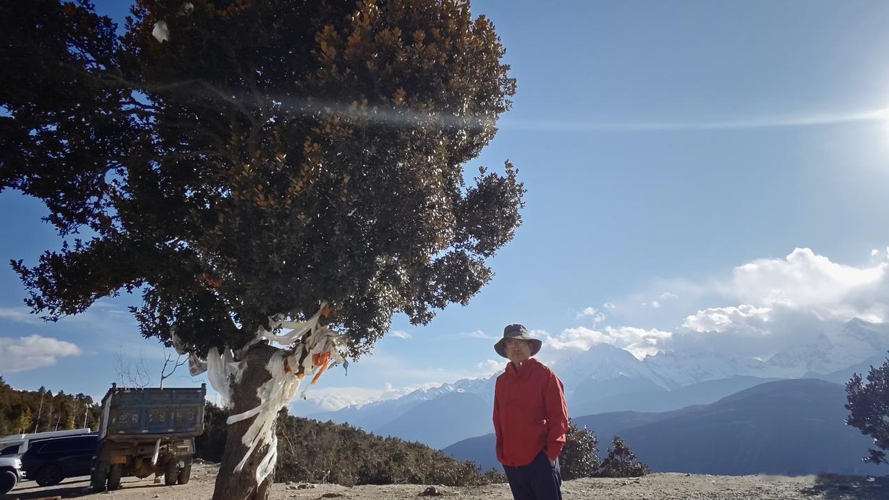 之后决定上山。到梅里雪山雾浓顶观景台,趁着天气好,抓紧看。那里海拔挺高,3400。县城这里是3000,已经有点儿高原反应了。