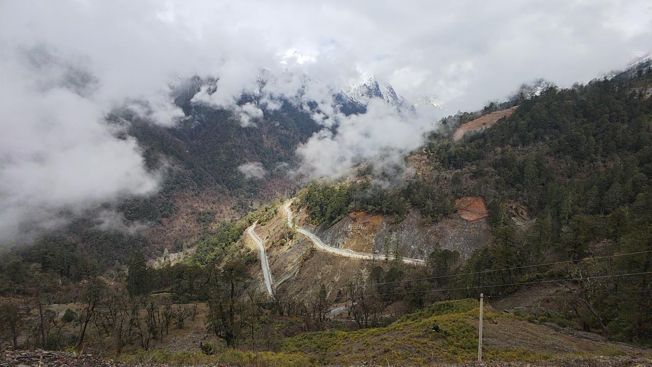 山路弯弯,终于到达孔雀山隧道。孔雀山位于云南省贡山县与德钦县的交界处,因山形仿若一只展翅欲飞的孔雀而得名。孔雀山山势南北走向,分隔了澜沧江与怒江,也将迪庆州和怒江州分隔开来。过了孔雀山隧道,和那边景色完全不一样。几乎看不见雪山了。也没有什么太好的看点。一路下坡,之后来到南北向的国道。弯道少了一些。速度也可以提上去了。