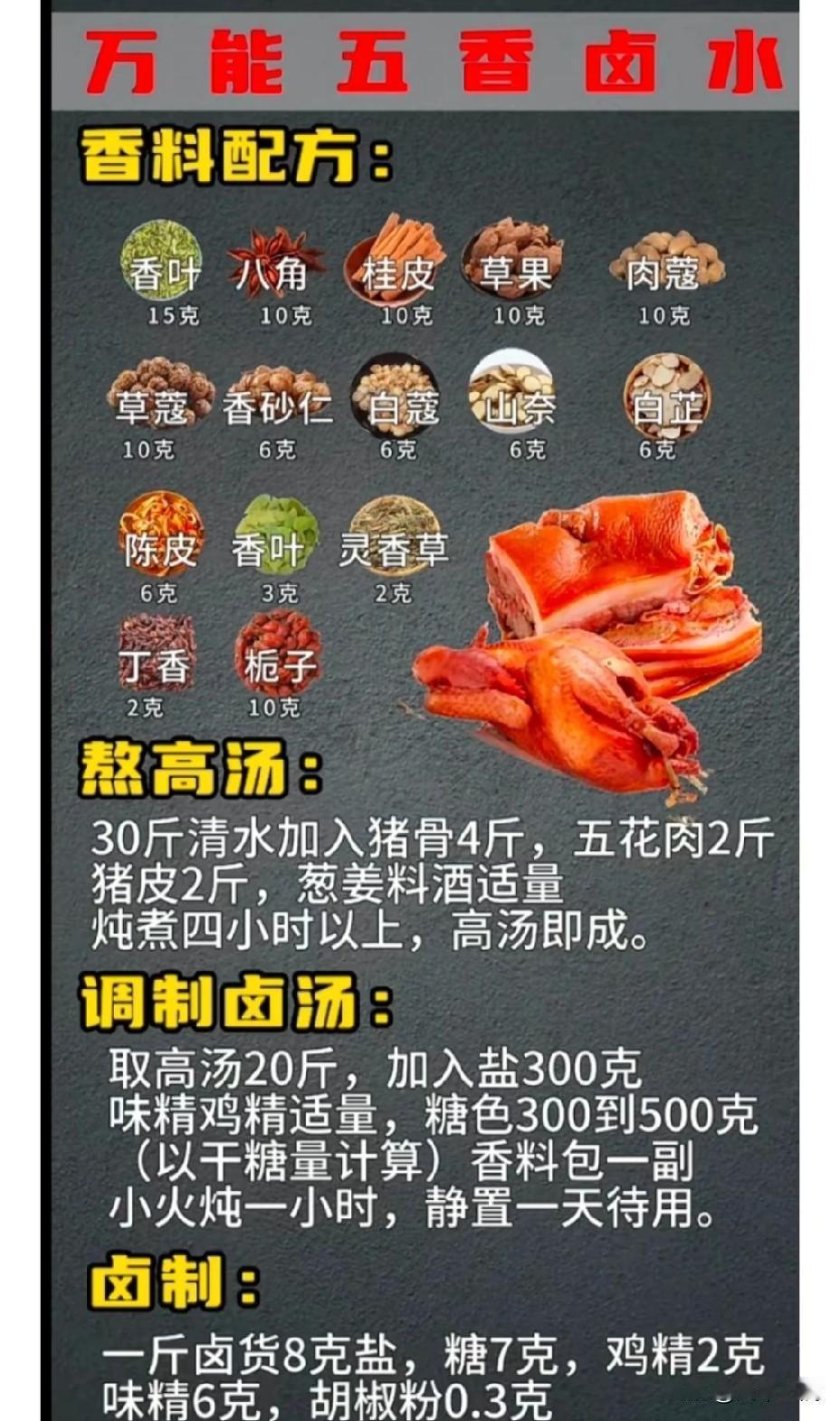 掌握了这些增香料的使用方法和配方,相信你也能卤出美味可口的卤菜。赶紧动手试试吧,让家人朋友都尝尝你卤的美食! 配方香料