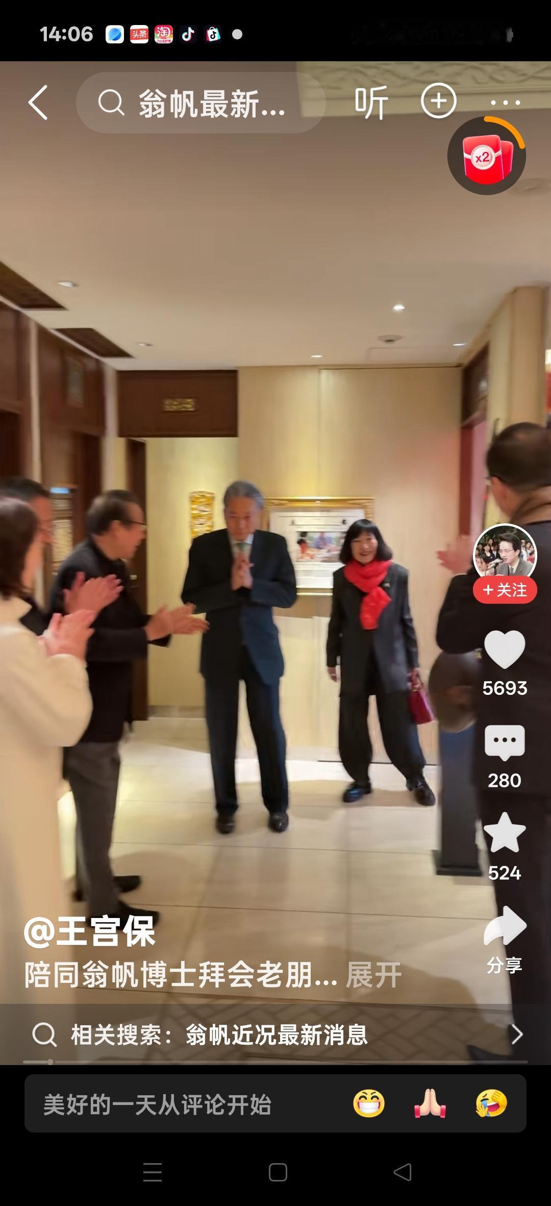 陪同翁帆博士拜见老朋友鸠山由纪夫夫妇,鸠山夫妇表达对杨振宁先生的缅怀之情,并关切的询问翁帆博士的生活和工作近况。网友说:鸠山由纪夫是个有良心的日本政治家,应大力支持他和他的朋友,在日本政坛壮大队伍。有的人说:看这场景暖暖的,翁帆受到普世尊重可见一斑。不嫁给杨振宁,哪有这个头衔和平台?有付出就有得到,上天是公平的,付出的是青春辛苦寂寞,得到的是名誉和地位!有的人说:翁帆在杨杨先生身边成长20年,学到的东西,一般人难以企及,出场就是世界级平台!有的人说:翁帆的思想境界,那是有高度的,至于有多高与观着的落脚点在哪个层?大家说是这样的吗?