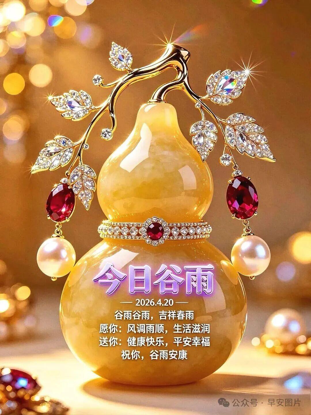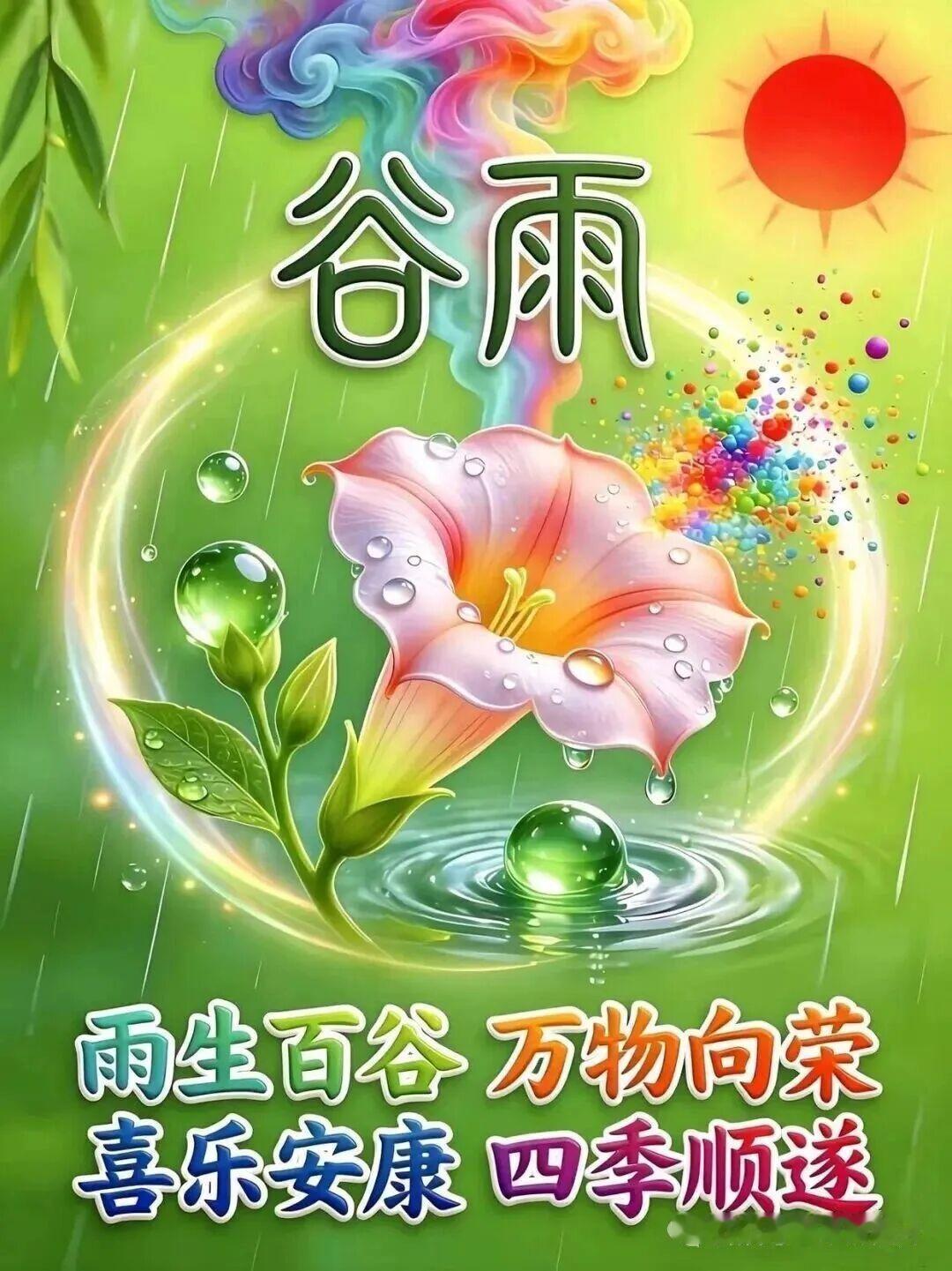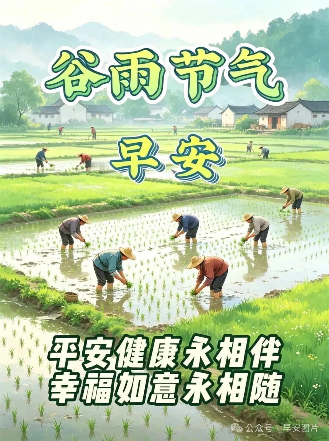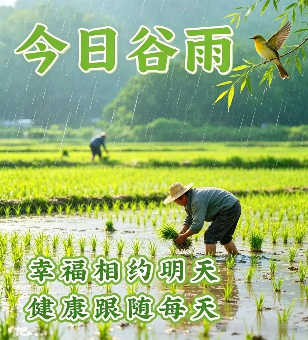 谷雨早安!谷雨临,春将暮,万物繁茂,雨润千谷,愿时光清和,年年平安,谷雨时分,细