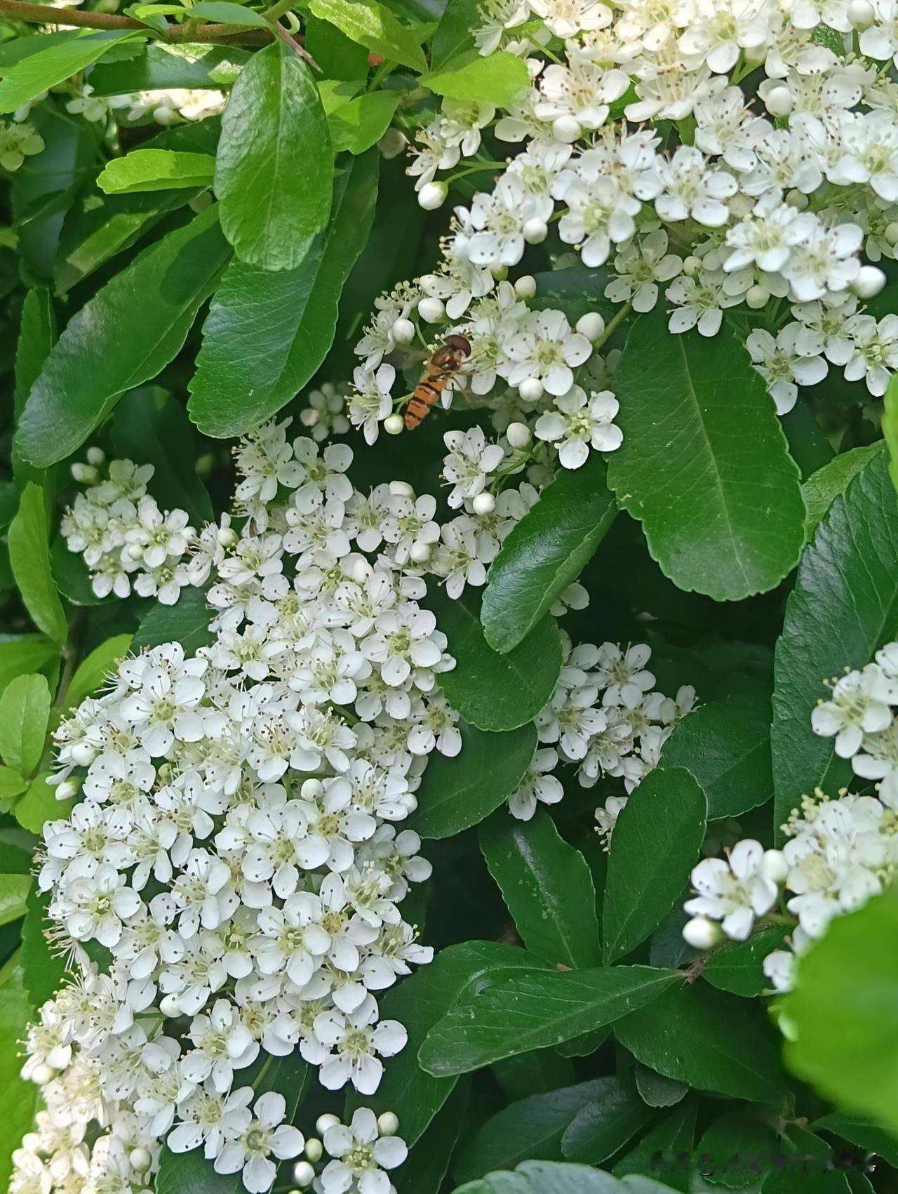 它的幼虫倒是园丁们的帮手,专治那恼人的蚜虫。此刻它静静地伏着,与这满树恬静的白,融成了一幅无声的春图。