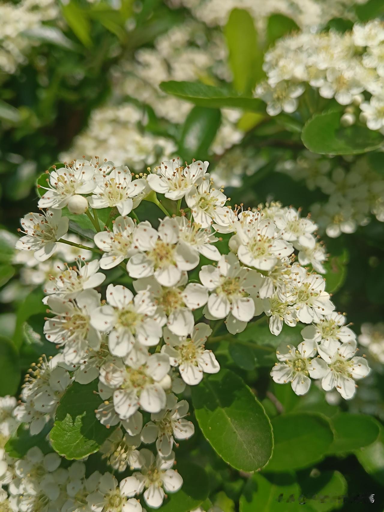 园区遛弯,拍了几张片子,手机识物说是火棘花。