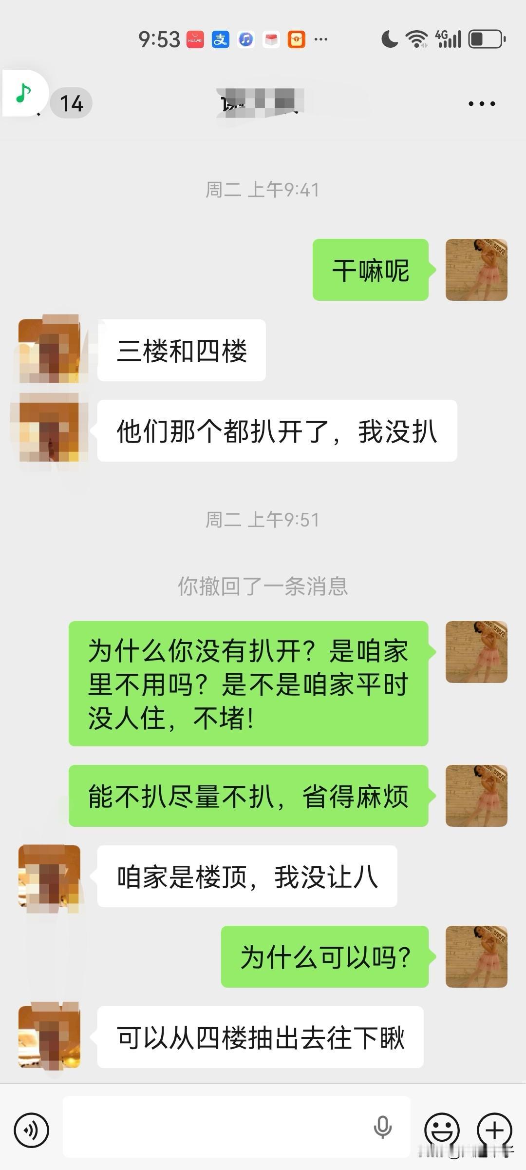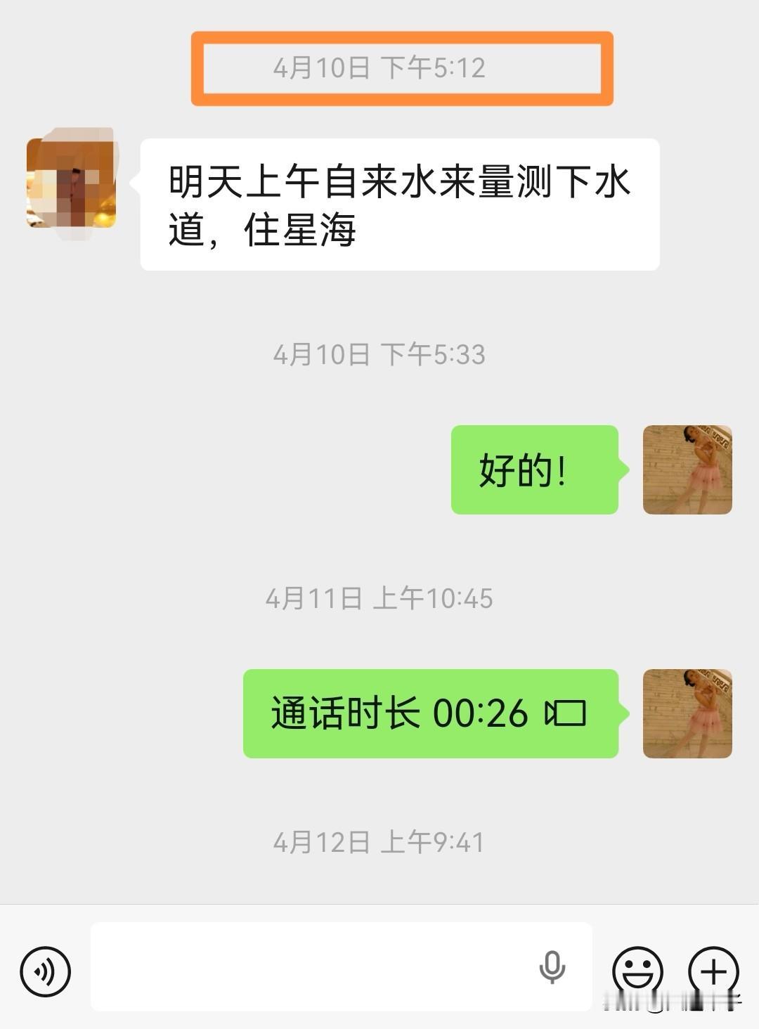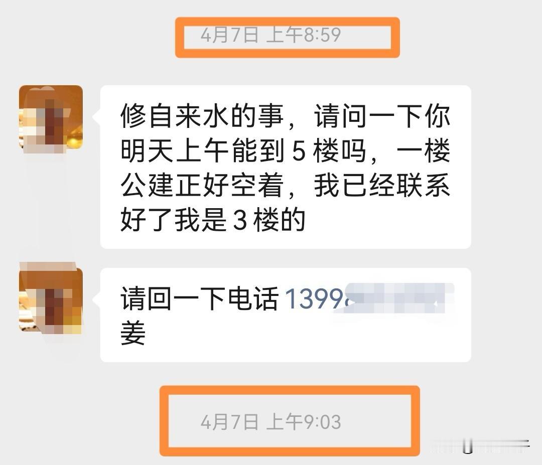 邻居和我家先生沟通, 4 月 7 日,轮到我家这个单元换管线和水表。