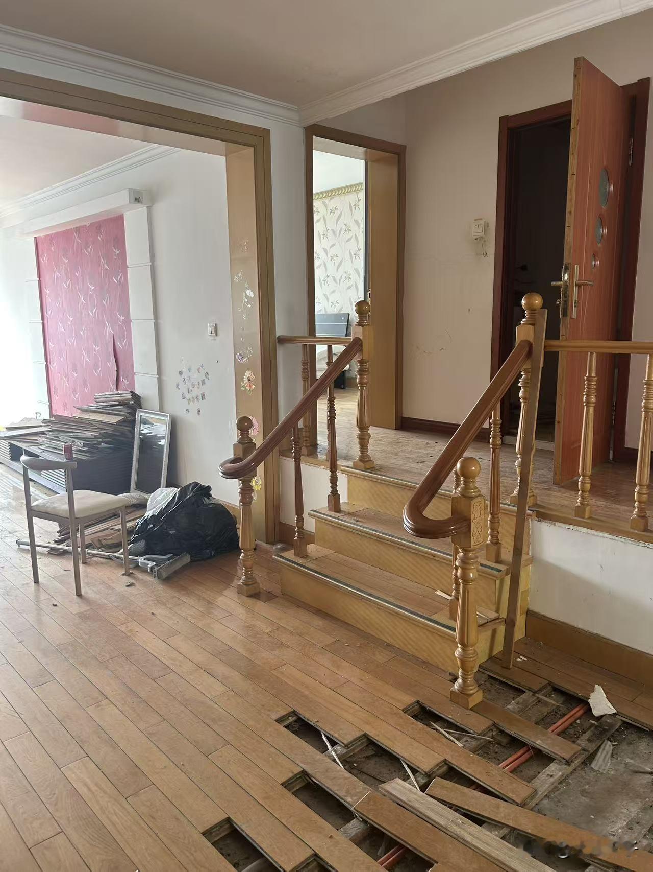 我们家的单元共住 10 户,实施这个项目,1~4 层地板都要扒开几块,因为他们装修的时候,把水线埋到地板下面。