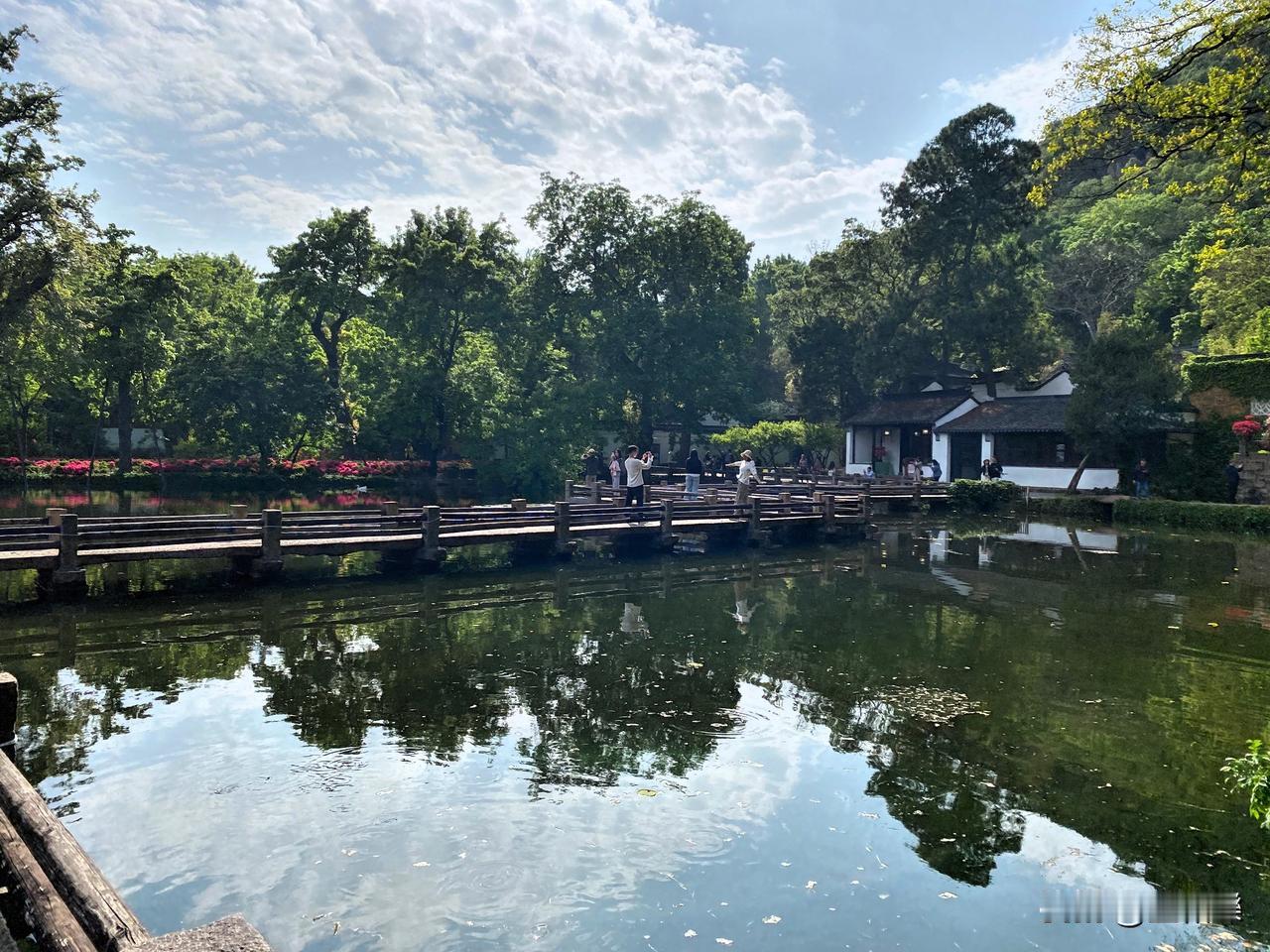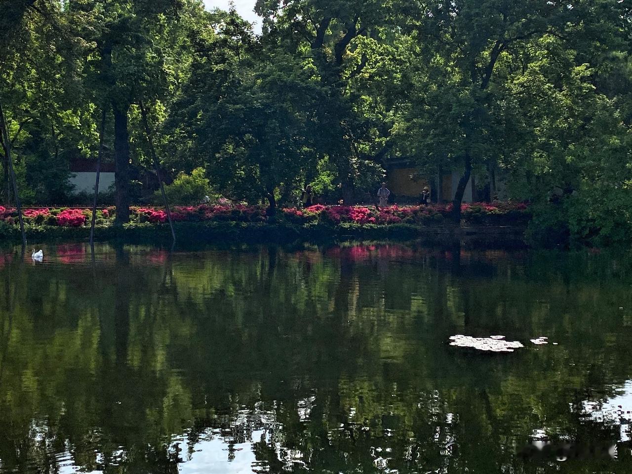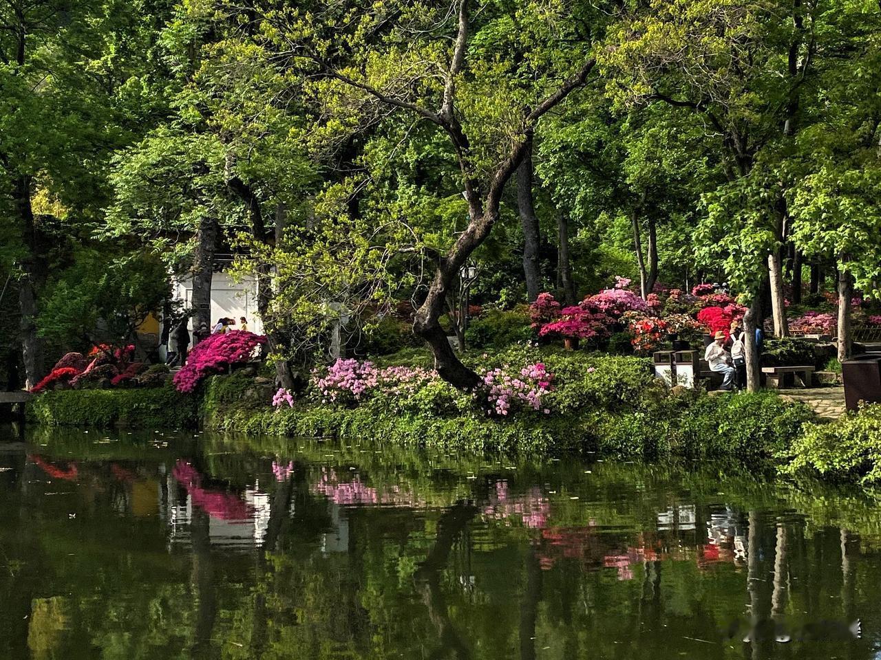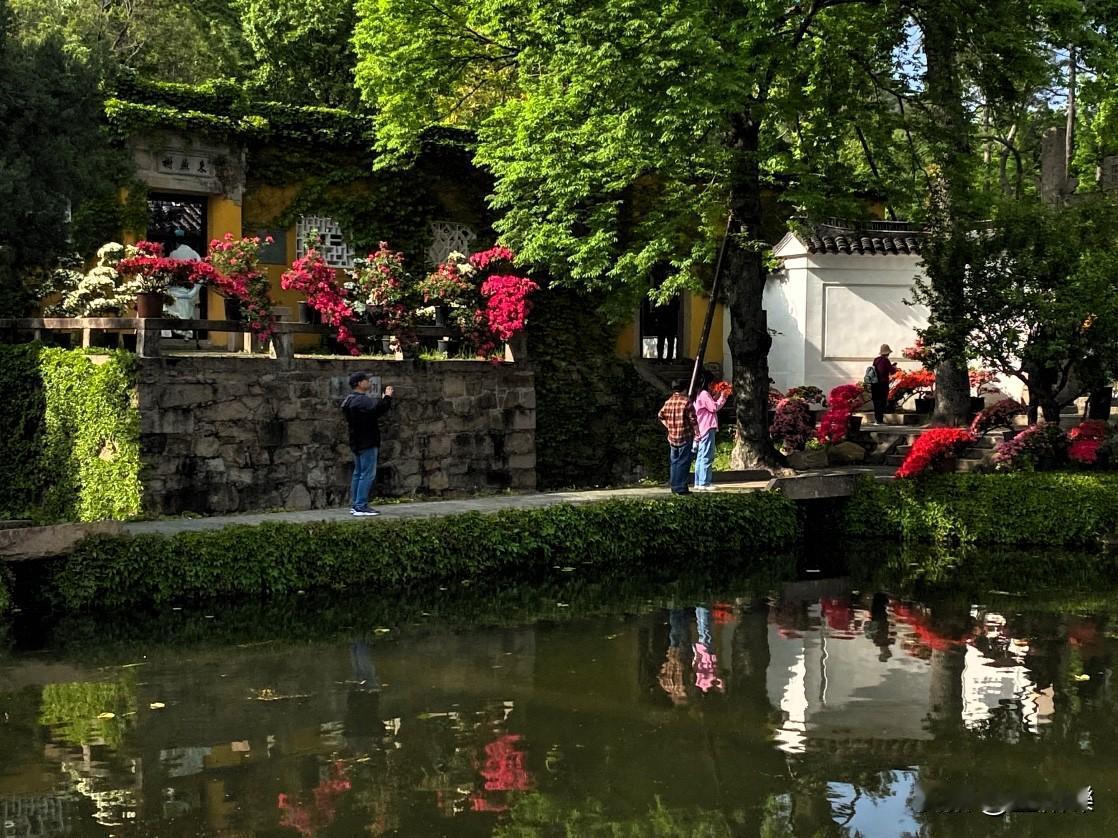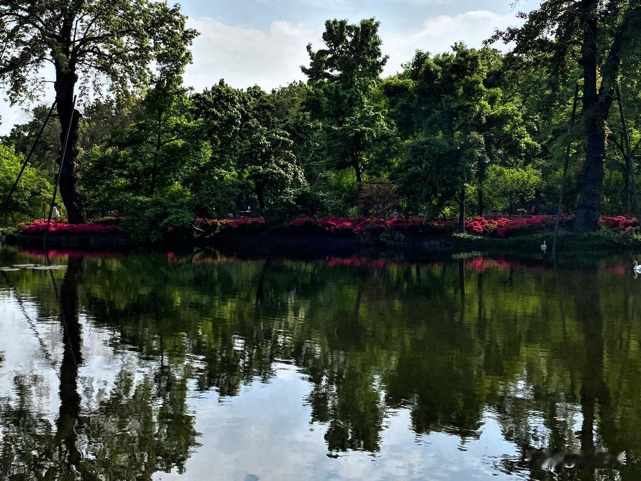 天平山簏水绿静 杜鹃满岸写诗意 微风轻拂皱涟漪 蜂蝶翩跹舞芳蹊 漫步其间心沉醉