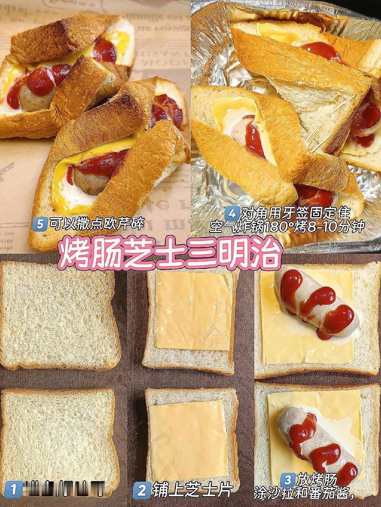 3️⃣烤肠芝士拉丝三明治