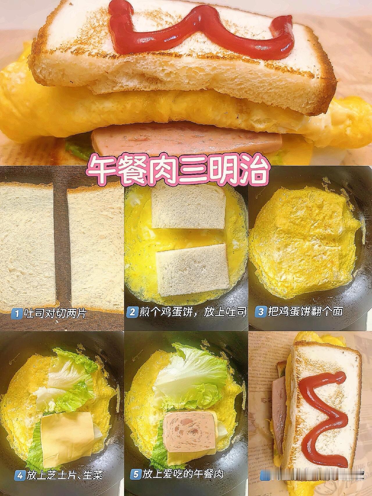 1️⃣爆浆芝士午餐肉三明治