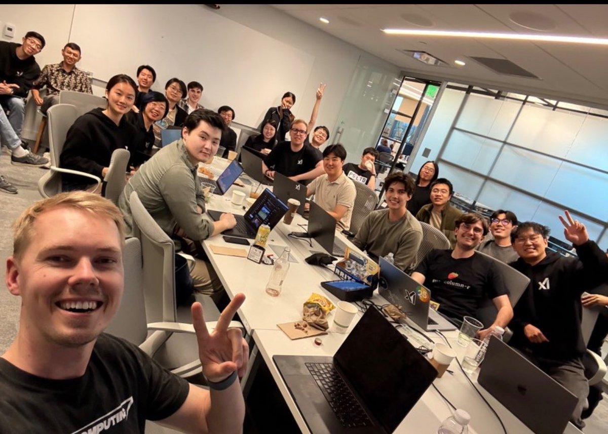 马斯克旗下人工智能公司xAI的团队合影,绝大多数面孔是东亚人(主要是华人),只有