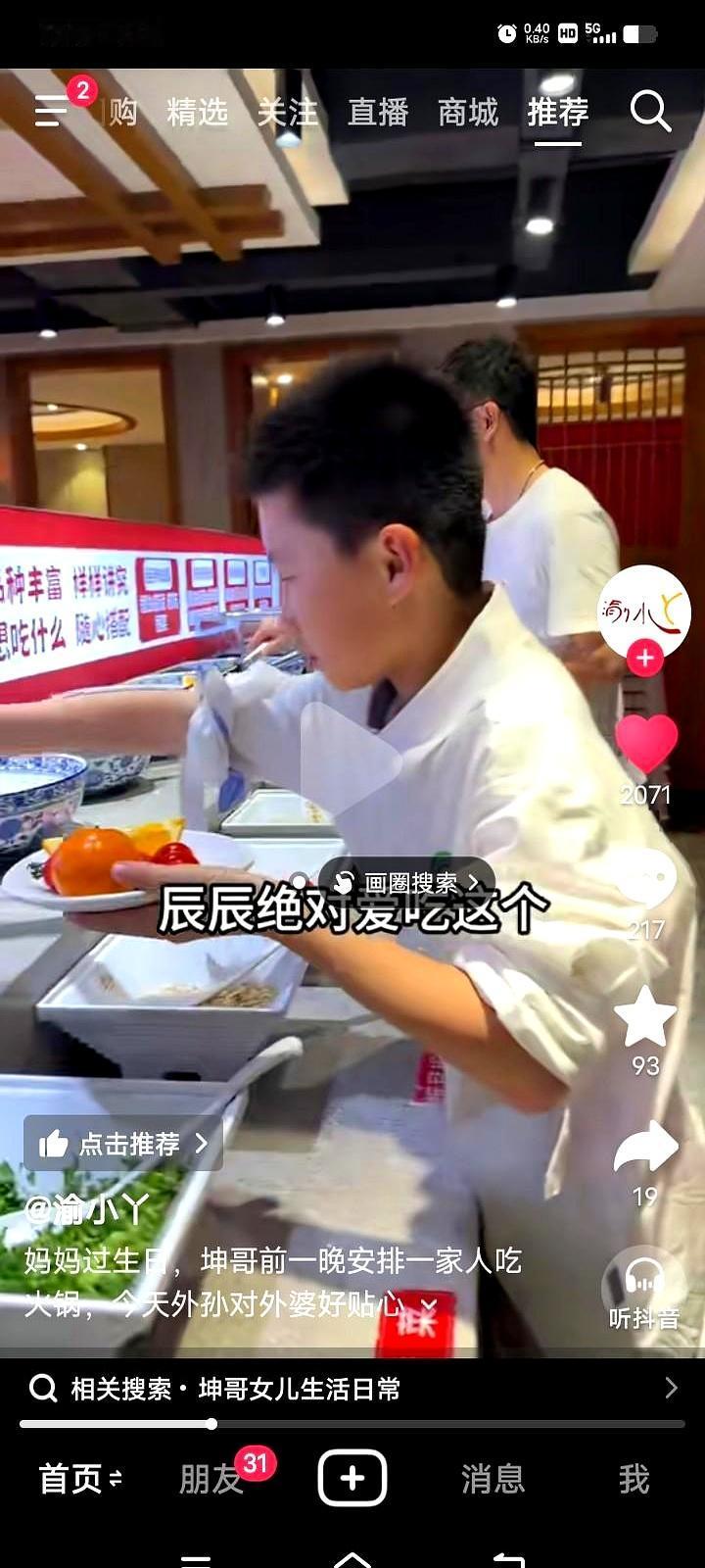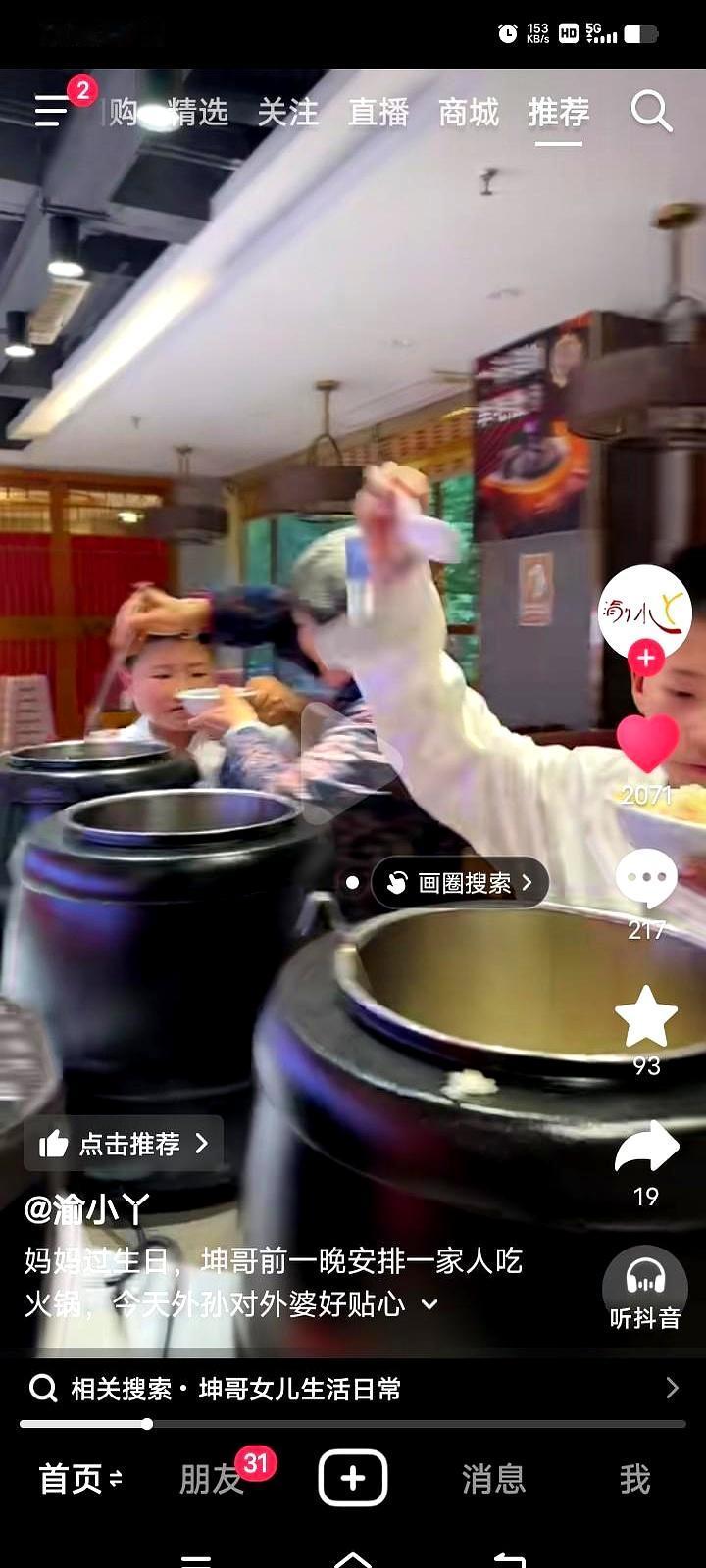 今天渝小Y的新视频里,中林的外婆过寿,渝小Y和坤哥领着两个孩子,和洋洋的爷爷奶奶一起去贺寿。
