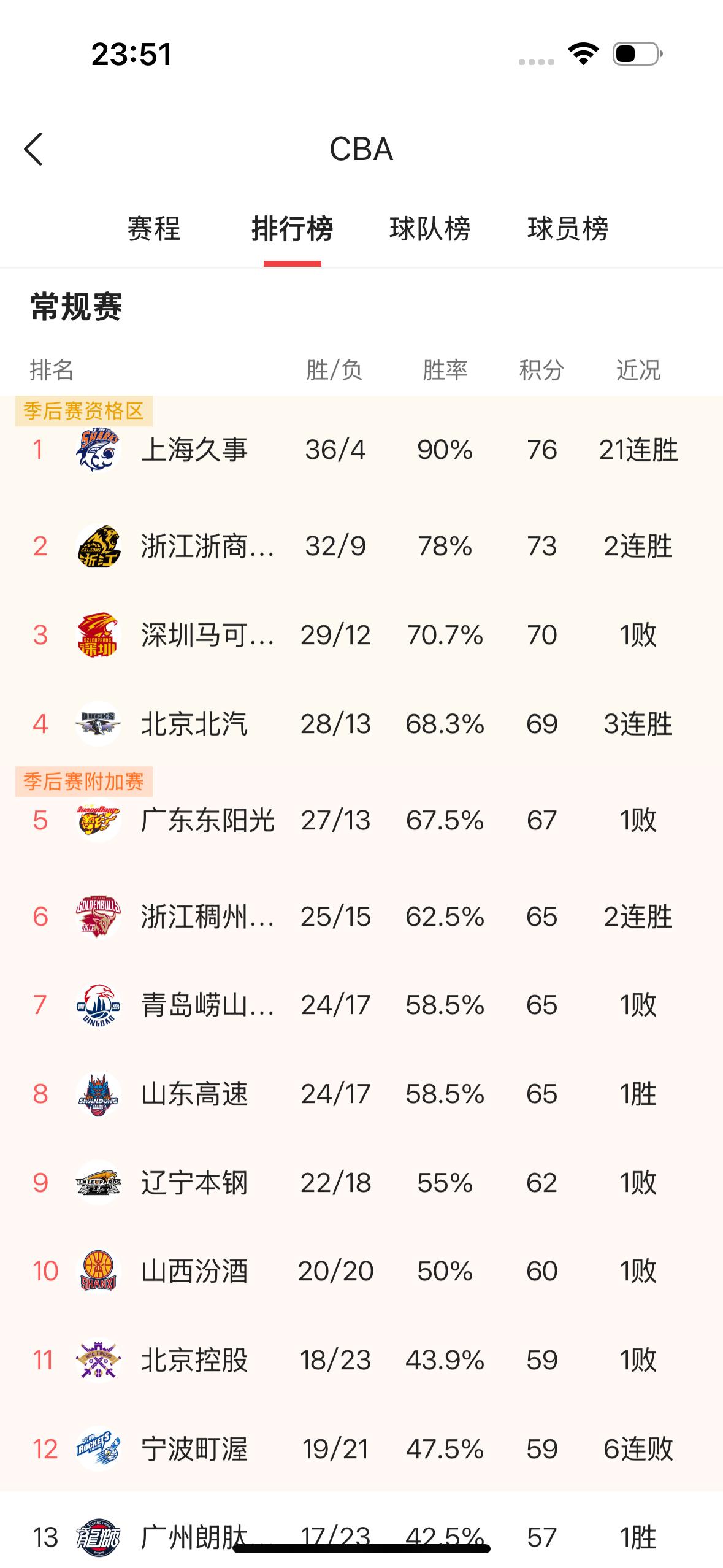 今天是2026年4月20日,星期一,CBA常规赛一共有六场比赛。