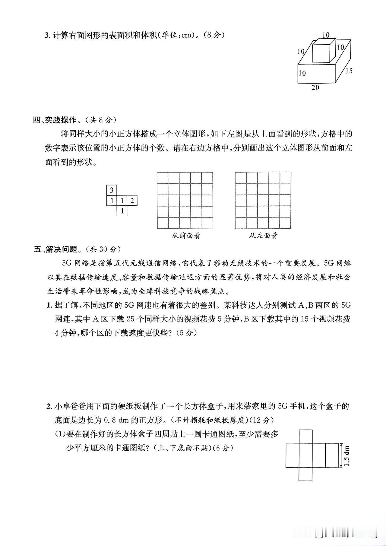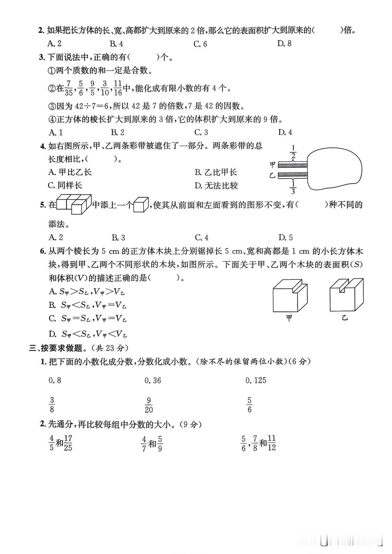五年级下册数学期中综合素养测试,挑战你的智慧!