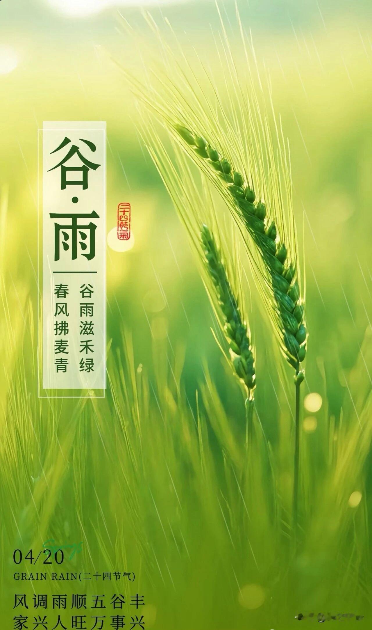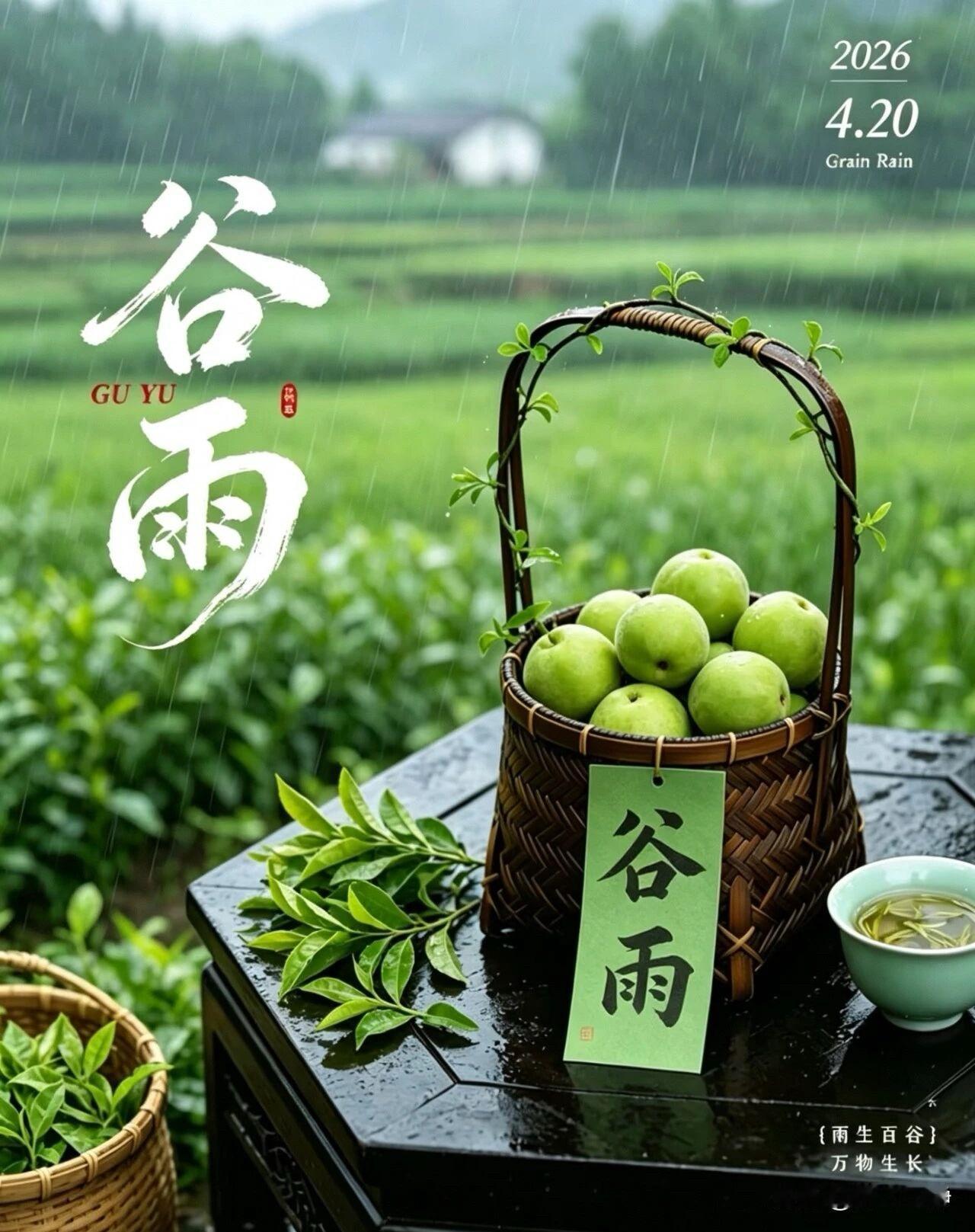 🍎²⁰²⁶/₀₄.₂₀ 🧨ᵕ̈ 🐎🍃🌻🍒🍡 🍃Hello, April🍃 谷雨春光晓,山川黛色青。 好雨知时节,万物皆新生。 愿你眼中有光,心中有暖, 以清茶敬岁月,携清风赴远方。 所见皆风景,所遇皆温柔。 谷雨 二十四节气