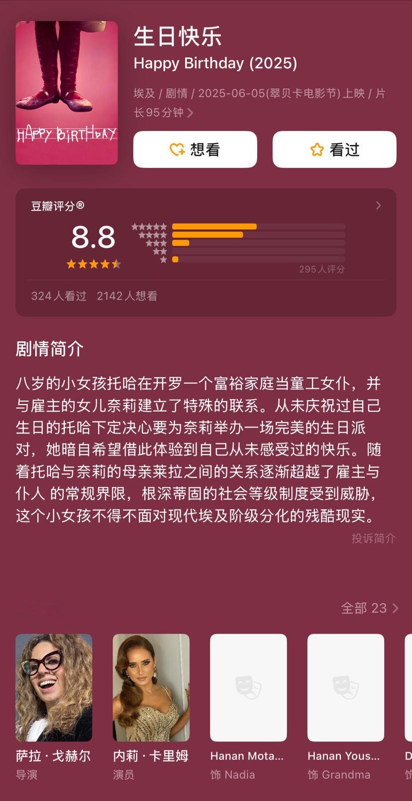 今年北影节的爆款佳作,来自一部埃及电影《生日快乐》,导演萨拉·戈赫尔的长片首作,首映后收获豆瓣8.8分。