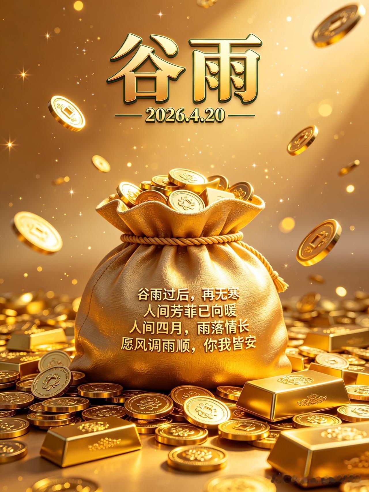 春风藏暖意,是把最后一丝温柔缝进谷雨的针脚里;谷雨润人间,是将积攒一季的慈悲泼洒向大地🌬️🪡🌧️🙏🌍。愿你三餐四季,是柴米油盐的平仄,是锅碗瓢盆的韵脚,在寻常日子里过成诗🍚🥢🎵📜;温柔有趣,是风雨不惊的从容,是得失不较的豁达,在平淡时光里活出光💞😄🌪️🙅♀️⚖️✨。平安喜乐,不是远方的海市蜃楼,而是当下的谷仓满溢、灶火温软🛡️😄🏠🔥。正如苏轼所写:"竹杖芒鞋轻胜马,谁怕?一蓑烟雨任平生。"愿你:谷雨润心,诗酒年华~