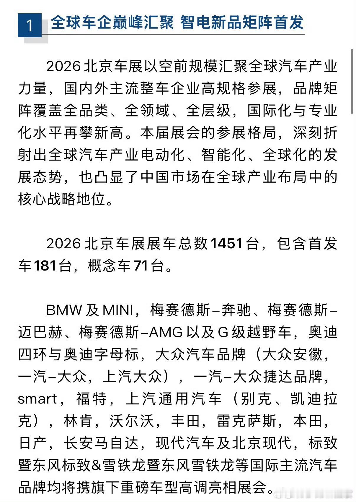 超180台新车将在北京车展首发今年北京车展规模相当大,新能源汽车在未来几年的发展