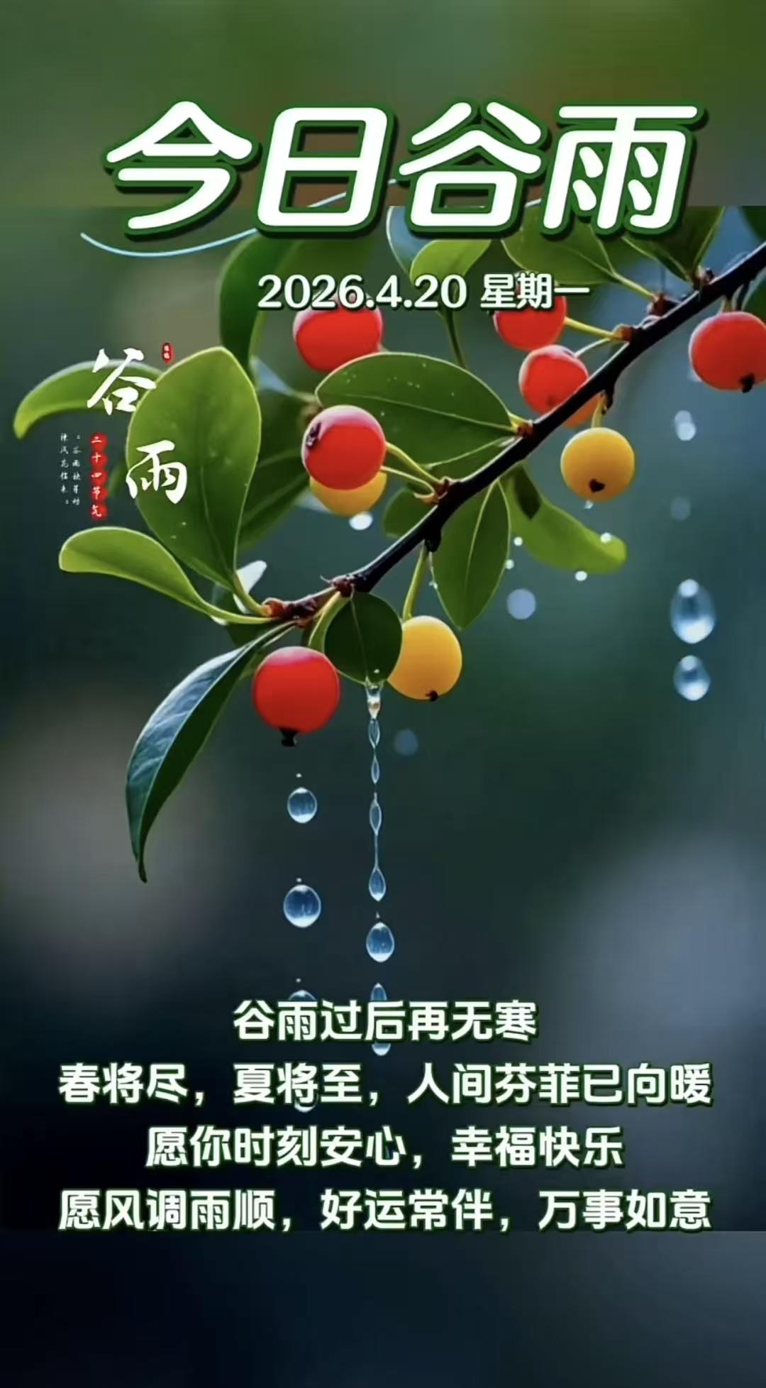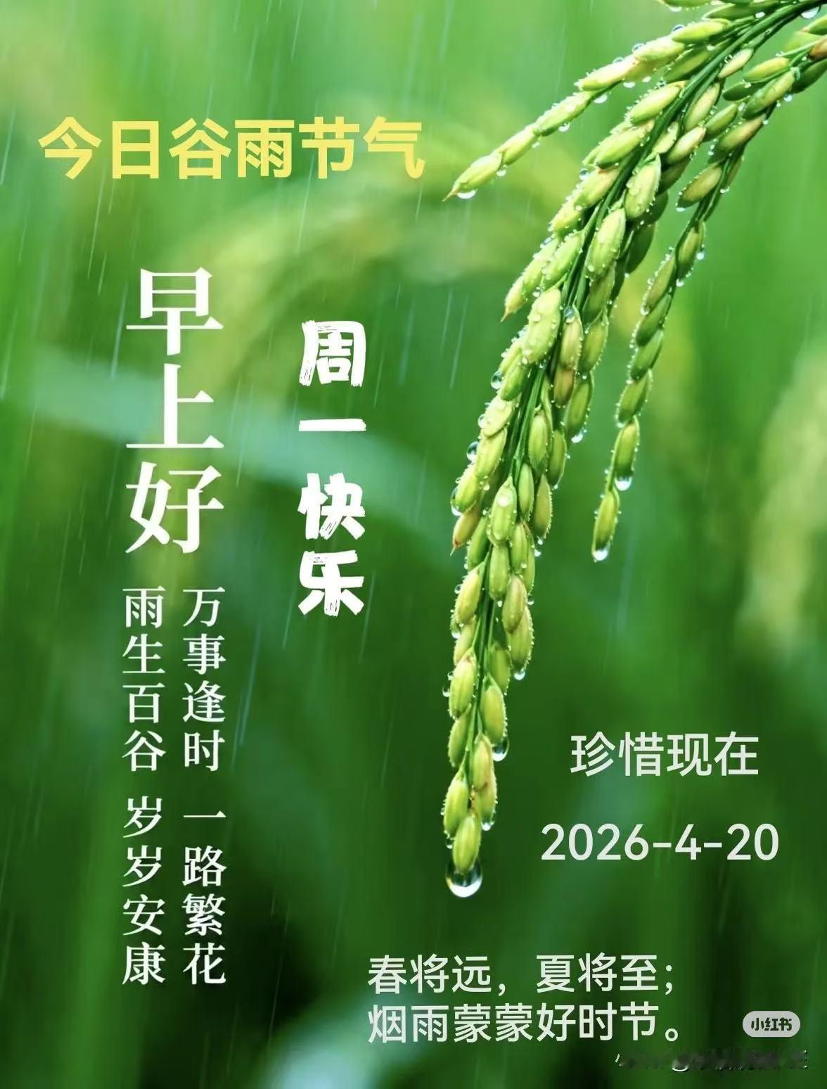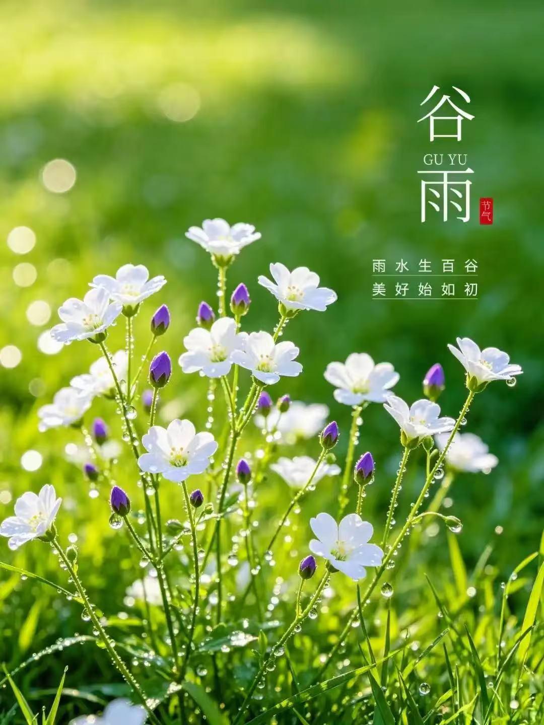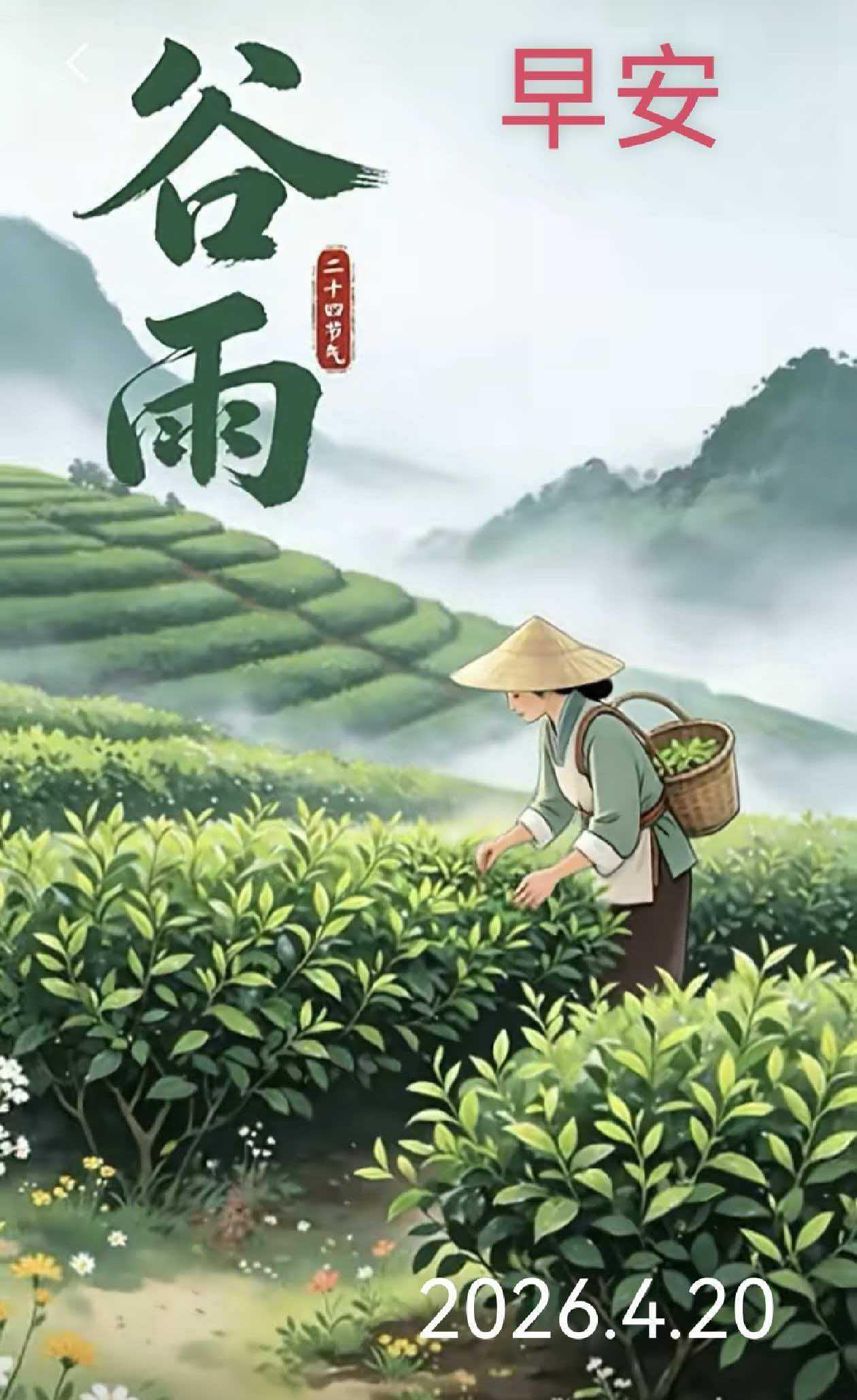 谷雨有雨是吉兆,雨润百谷长势好。北方小麦正拔节,南方新茶清香飘。